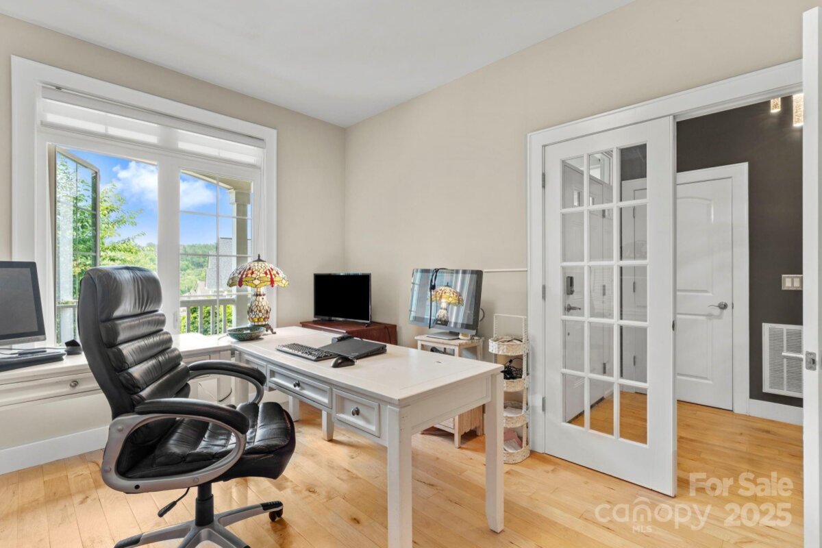 Exquisite Arts & Crafts home enriched with character & divine details inside & out. Gracefully poised at the end of a serene cul-de-sac in a charming neighborhood, this modern luxury property features eco-conscious solar energy, yielding consistently reduced costs and a fully equipped lower-level apartment, perfect for an in-law suite. Soak in breathtaking sunsets from the expansive wraparound porch, surrounded by lush, meticulously landscaped grounds. Inside, dramatic vaulted ceilings and a stunning stone fireplace define the 2-story great room. Rich maple hardwoods flow into a gourmet kitchen adorned with Cambria quartz counters, custom lighting, and a stylish breakfast bar. The main-level primary suite is a retreat of its own, offering deck access and a spa-inspired bath. Generously appointed guest rooms, bonus spaces, and refined finishes complete this rare offering. Perfectly situated near the finest dining, shopping, and amenities of South Asheville. | Basic Information