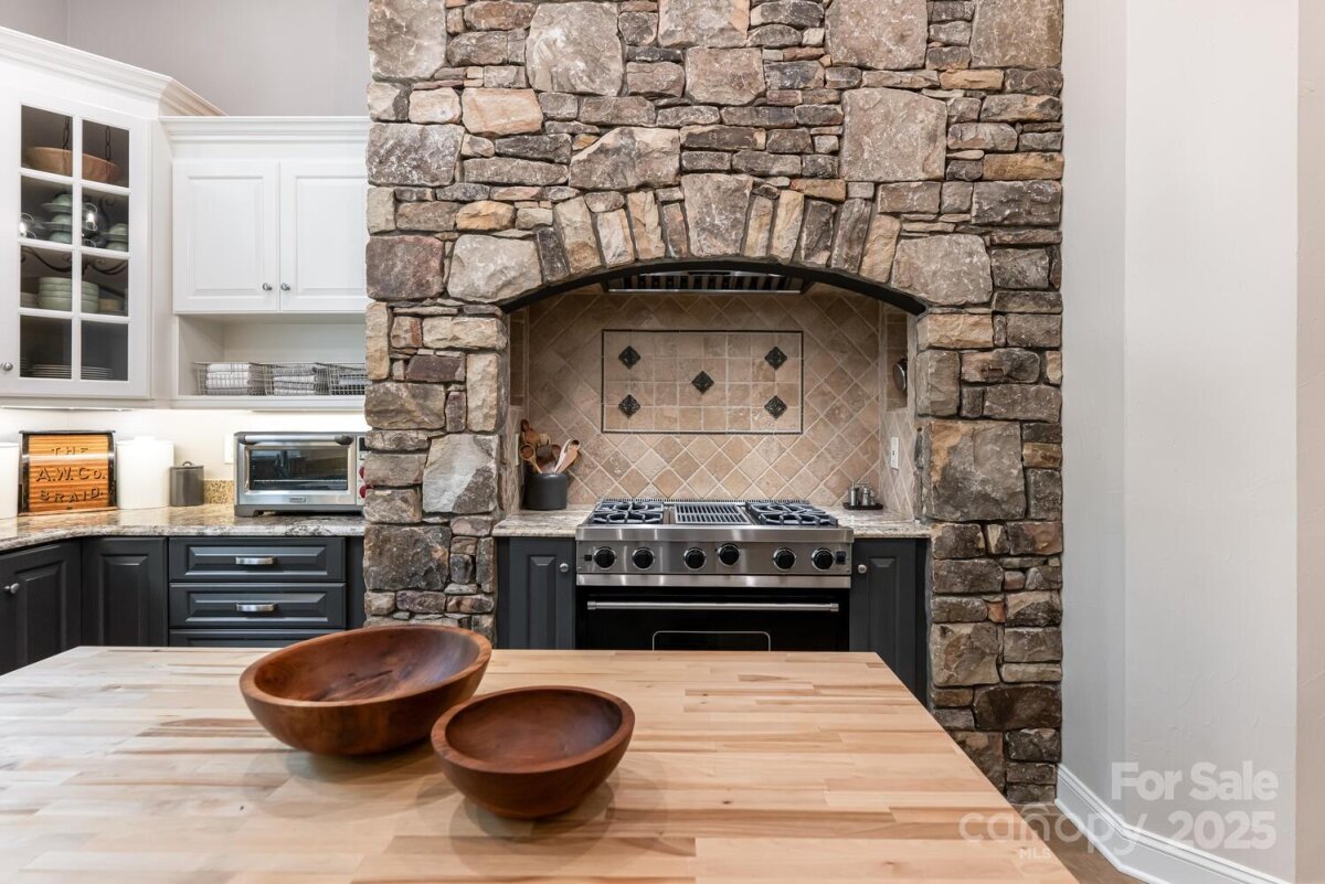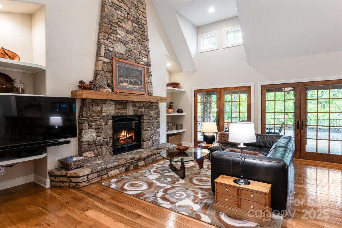 Exquisite Mountain Sanctuary on 1.3 Acres with Unparalleled Landscaping & Luxury Finishes. Prepare to be captivated by this truly exceptional residence — a stunning architectural masterpiece set on 1.3 private acres, surrounded by meticulously curated gardens, extensive stonework, and lush landscaping. From the moment you arrive the long, elegant driveway and cobblestone-paved courtyard set the tone for the refined mountain living that awaits. Step inside to soaring cathedral ceilings, solid hickory hardwood floors, and an open-concept layout that seamlessly connects the great room, dining room, and gourmet kitchen. A dramatic floor-to-ceiling stone fireplace with a custom hickory mantle is flanked by built-in architectural shelving, offering warmth and sophistication in equal measure. The chef’s kitchen is a true showpiece, featuring granite countertops, a large breakfast bar, high-end stainless steel appliances, a built-in Miele espresso machine, and a striking floor-to-ceiling stone surround encasing the 36-inch Viking gas range and vent hood. A large walk-in pantry and custom kitchen office with built-in hickory desk and shelving complete this entertainer’s dream. Retreat to the luxurious primary suite, which includes a walk-in closet with built-ins and a spa-inspired bathroom featuring a freestanding soaking tub, dual vanities, and a beautifully tiled walk-in shower. Completing the main level is a powder bath and laundry room with sink and cabinetry. The finished lower level offers a spacious family/recreation room, two guest bedrooms (one ideal as a home office), a full bath, and an expansive heated storage space. A handcrafted timber-framed breezeway connects the home to the oversized, heated two-car garage with a dedicated workshop. Outdoor living is nothing short of magical, with a timber-framed main level patio finished in slate and decorative iron railings, plus a terrace-level patio perfect for quiet moments or entertaining. The breathtaking landscaping includes stone steps, paths, and hardscape details that create a garden sanctuary unlike any other. Located just minutes from Asheville, Hendersonville, Brevard, and the Asheville Regional Airport, this is luxury mountain living at its absolute finest — truly a one-of-a-kind property that must be seen to be fully appreciated. | Basic Information