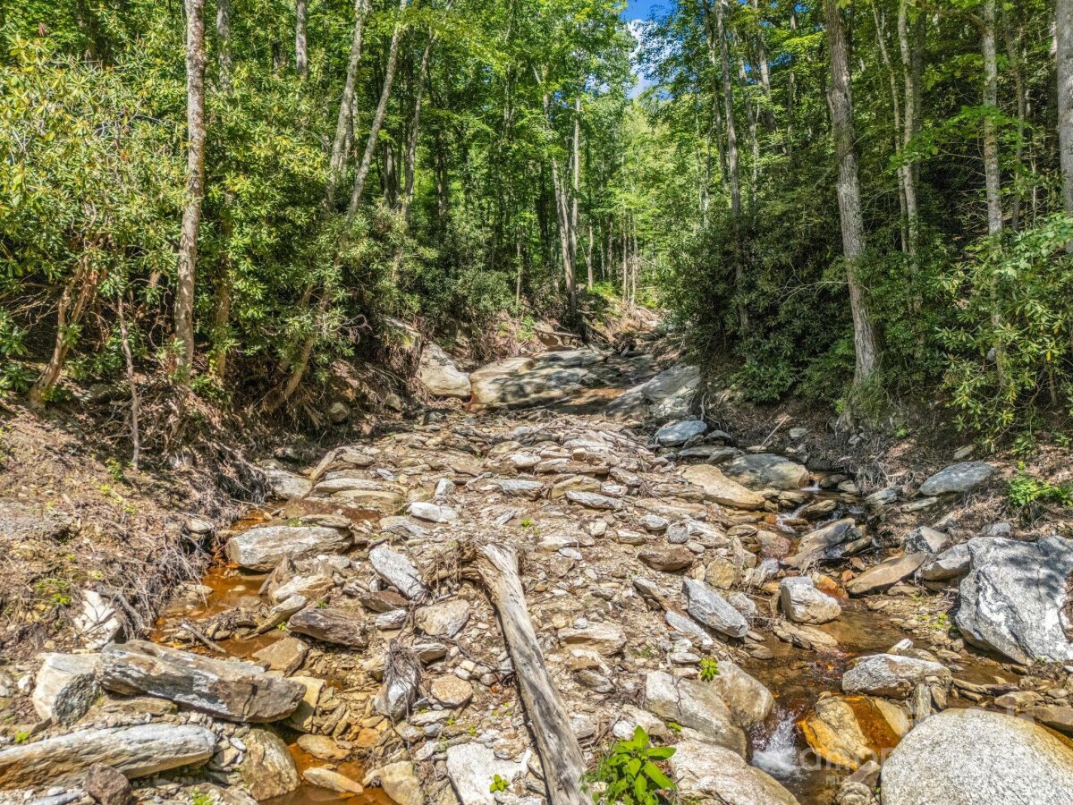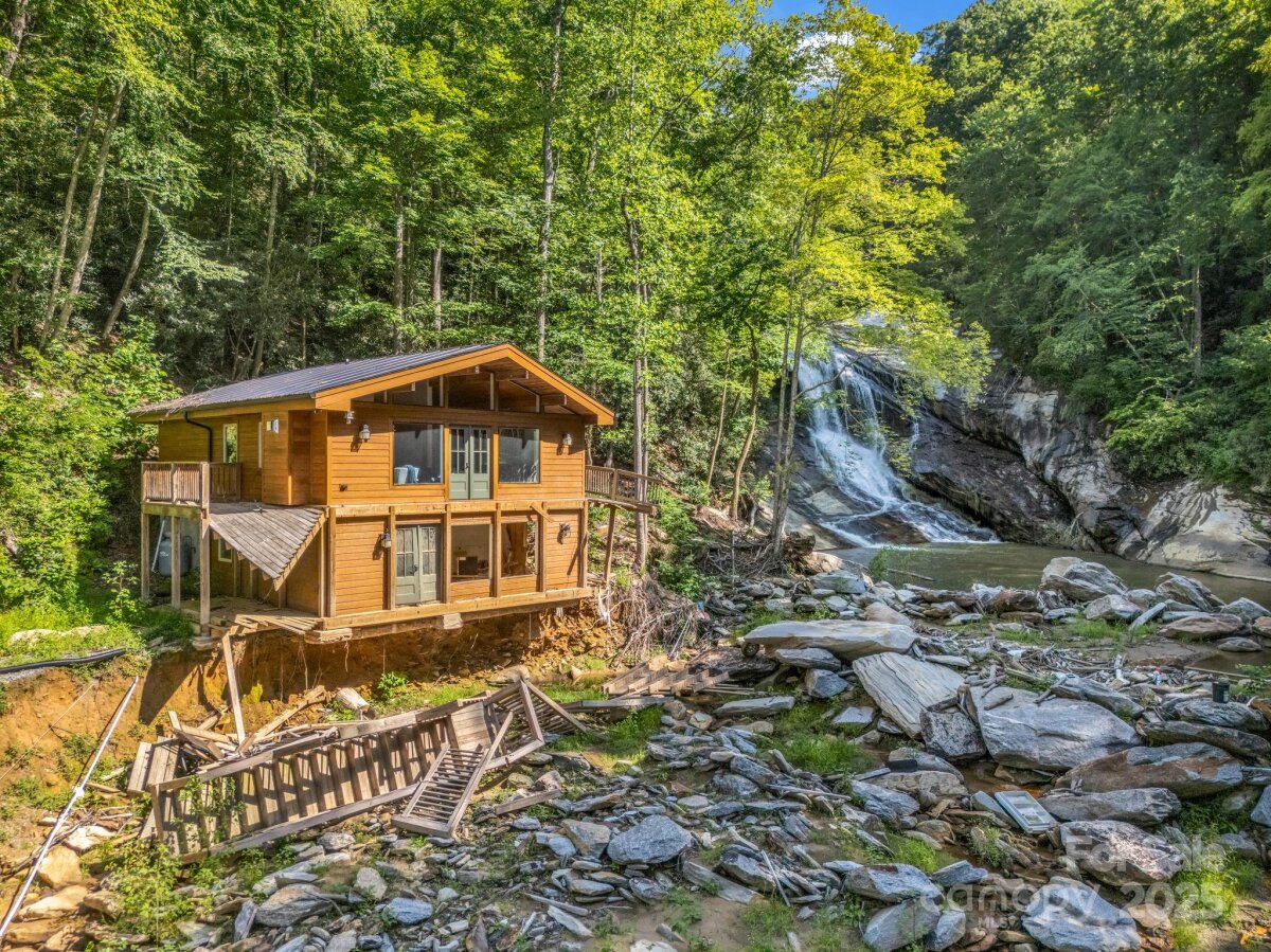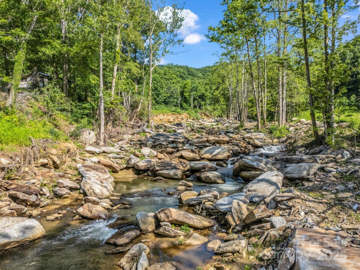 Incredible 52+ acre waterfall property between Black Mountain and Lake Lure! There are 3 gorgeous waterfalls and swimming holes that would rival anything you would see in nearby national forests. Flat Creek is the named stream that runs through the property and is home to rainbow and brown trout. Prior to Helene, the house was renovated and operated as a successful vacation rental. The storm damaged the lower level, and it is scheduled for removal by Buncombe County. The most likely build sites on the property are located on the southeast section of the parcel, where you enter the property. With some grading and new roads, additional building sites are accessible (with amazing view potential). Let your imagination run wild with new hiking trails, fishing adventures, picnic spots, and more! OPEN USE ZONING! Land has 2 access points; the SE corner and a right-of-way on the west side via a culvert over a small tributary (but the bridge is gone). See Virtual Tour for video/survey. | Basic Information