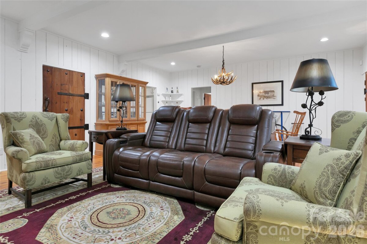 | Escape to this beautifully refurbished and fully furnished mountain retreat set on approximately 4 private, unrestricted acres. With nearly 605 feet of road frontage, a road easement along the eastern border, and gently sloping terrain, the property offers exceptional flexibility for future possibilities. Relax and take in the surrounding peaceful forest from your oversized private back deck - recently upgraded with new decking and railings. The home has been freshly painted inside and out, and updates include a new bathroom cabinet and a spacious walk-in pantry with new LVT flooring, among other thoughtful improvements. Originally built as a 1950s mountain getaway, the home retains its authentic character with handcrafted doors, exposed ceiling beams, and wood-paneled walls, creating the timeless charm of a classic mountain lodge. A 2009 addition significantly expanded the home, adding an expansive primary suite with fireplace, a library, and a large bathroom. The lower level features flex space with a secondary kitchen and half bath, ideal for guests, hobbies, or extended stays. One of the home’s most distinctive features is the secret circular staircase hidden through the primary closet back door, leading to the basement. There you’ll find lockable storage rooms concealed behind a bookcase, revealing a steel security door and two secure rooms with shelving and gun racks—perfect for storing valuables. Additional highlights include a Generac gas generator for peace of mind during severe weather. Conveniently located with an easy drive to Brevard, DuPont State Forest, Caesars Head State Park, and the restaurants and shops of Cedar Mountain, this unique mountain property blends privacy, character, and modern comfort in an ideal location. Situated on Cedar Lane, a level gravel road maintained by the state, providing easy year-round access. | Basic Information