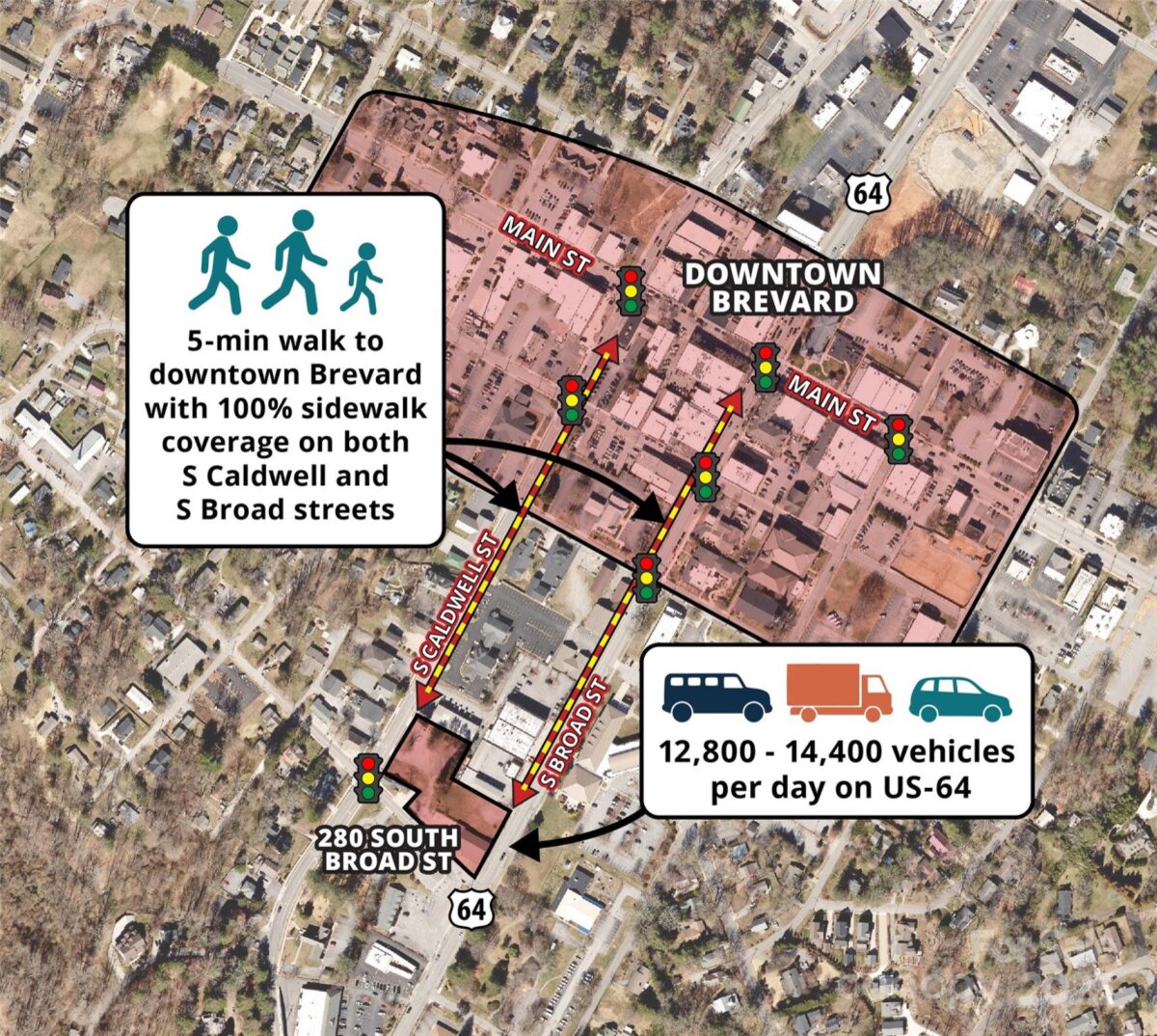 | Prime In-Town Development Opportunity – Fully Entitled 32-Unit Townhome Project (Delivered at Closing) 280 S Broad Street, Brevard, NC 28712 Total Assemblage: ±1.42 Acres (3 Parcels) This ±1.42-acre, three-parcel assemblage represents one of the most strategically located development opportunities in Brevard. The seller currently owns two parcels (±1.05 acres) and is under contract to acquire the third parcel (±0.37 acres), with all three to convey together. At closing, the site can be delivered fully entitled for a 32-unit townhome community, giving a buyer a ready-to-execute project in a market with proven demand and limited supply. Positioned just three blocks from Main Street, the property benefits from DMX zoning, which allows a wide range of uses, including residential, mixed-use, multifamily, medical, office, hospitality, and commercial. The assemblage offers city utilities, level topography, and frontage along US-64, providing excellent access and visibility. Walkability to restaurants, retail, Brevard College, the future Ecusta Trail, and Transylvania Regional Hospital strengthens its desirability for both residential and commercial development. Two pricing models are available: $130,000 per entitled lot (32 total) or $175,000 per finished, build-ready pad. A rare opportunity to acquire a fully entitled, downtown-adjacent development site in one of Western North Carolina’s most supply-constrained and high-demand markets. Also listed as land MLS # 4327322. Reach out to Agent for the full pitch deck | Basic Information