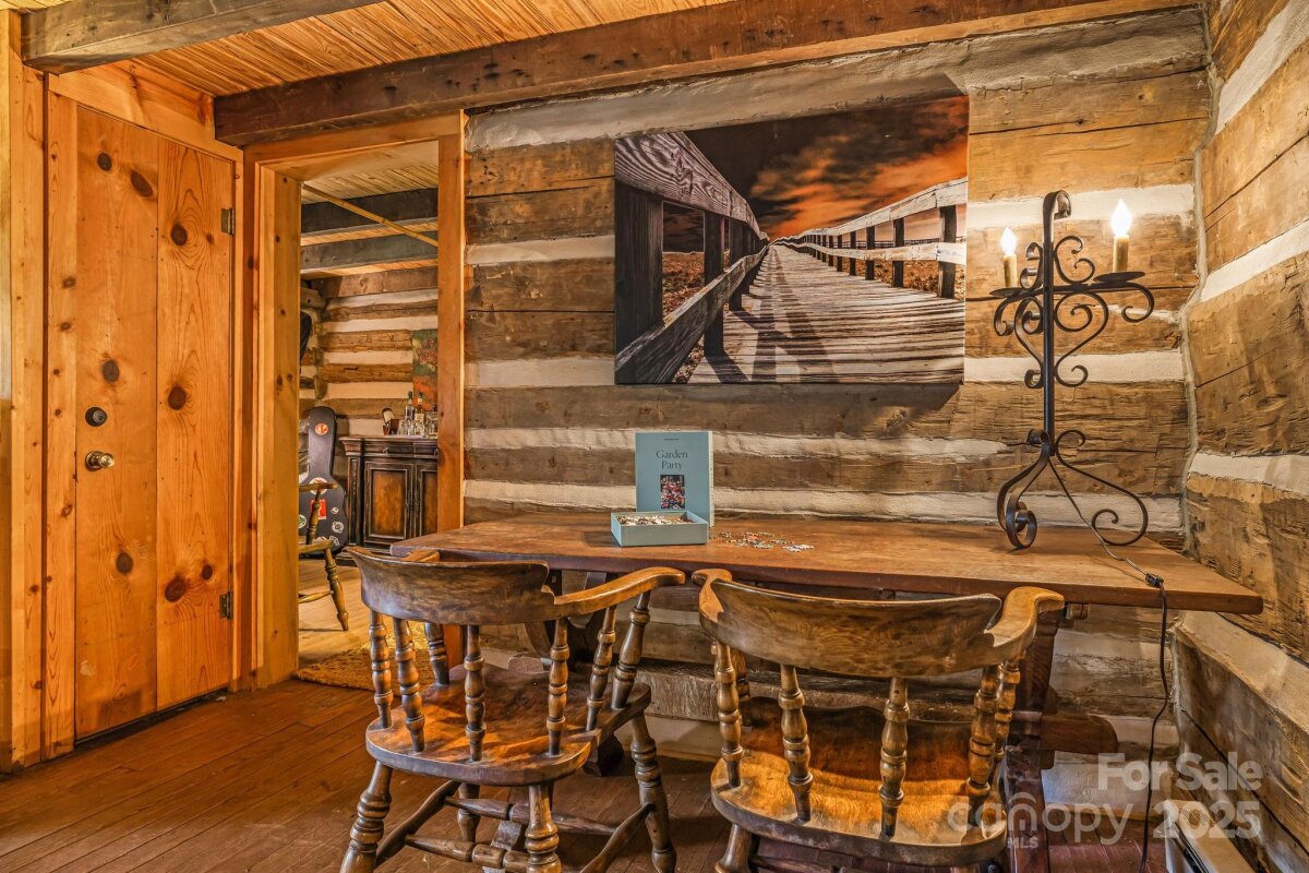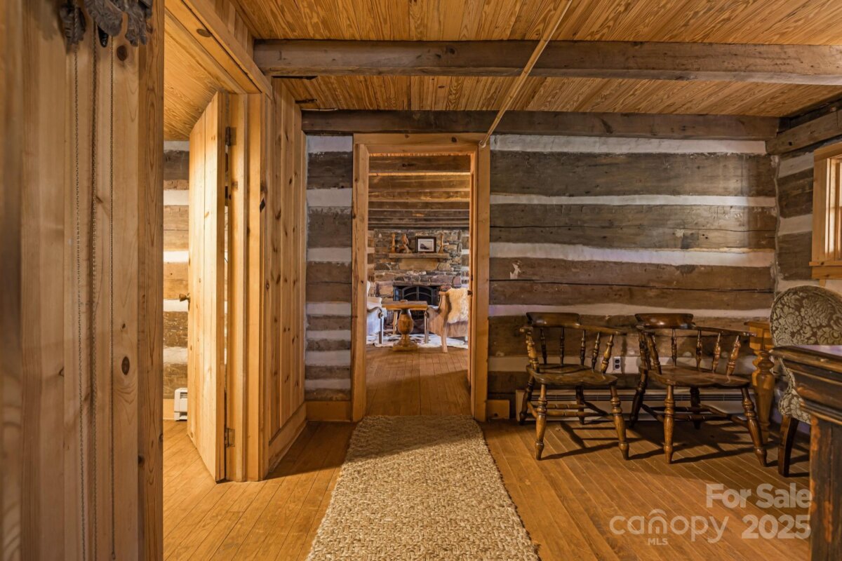 | You will feel like you're on the set of “Outlander!†Built for a circuit court judge in 1810 and 1840, these historic log cabins were moved to this site in 1975, when they were conjoined, restored and modernized into a cozy retreat with 21st century comforts. While secluded in bucolic beauty at the top of a hill, plateaux above and around this site are large enough for more structures; the top one offers unimpeded views as far as the eye can see. Two recently rebuilt rocking chair porches in front and back lead to the grassy, level yard. Inside, two large wood-burning stone fireplaces provide a homey atmosphere for reading and contemplation. With 3 bedrooms, 2 full baths, living and family rooms in addition to several other small rooms, the cabin comfortably sleeps as many as 14. A perfect escape from the stress of modern life, yet the charming town of Burnsville is a short 8-minute drive away. Please note: this property sustained no damage whatsoever from Hurricane Helene. | Basic Information