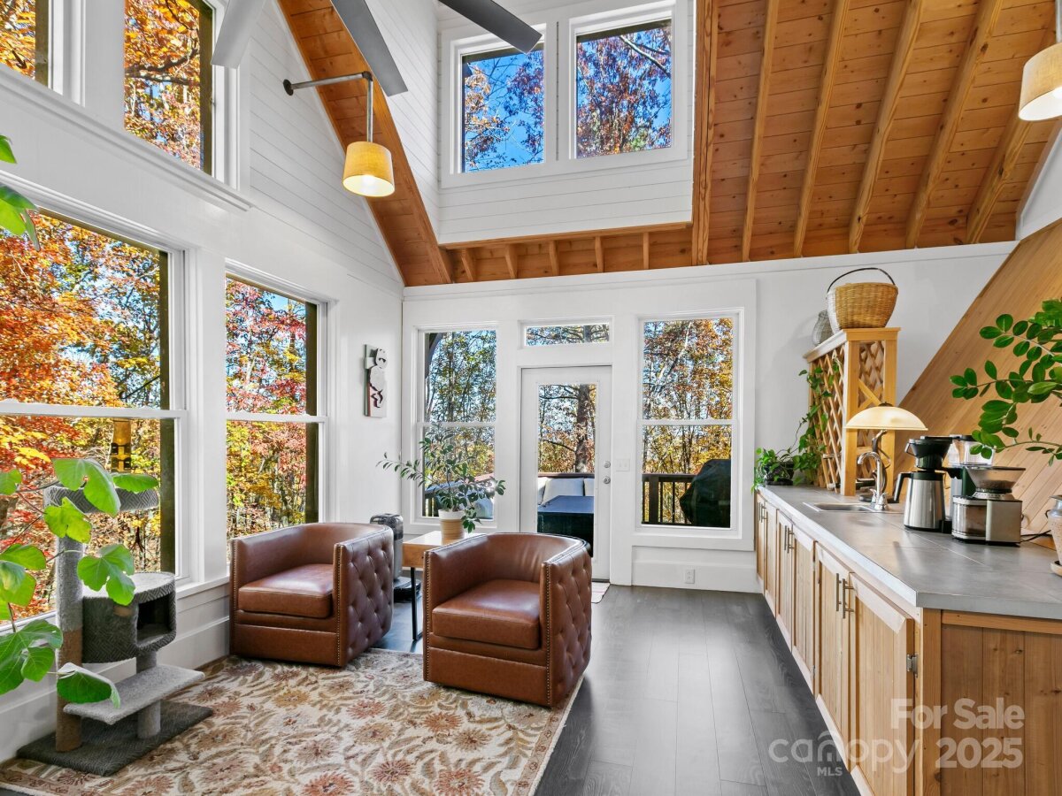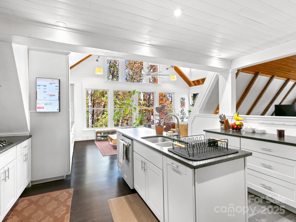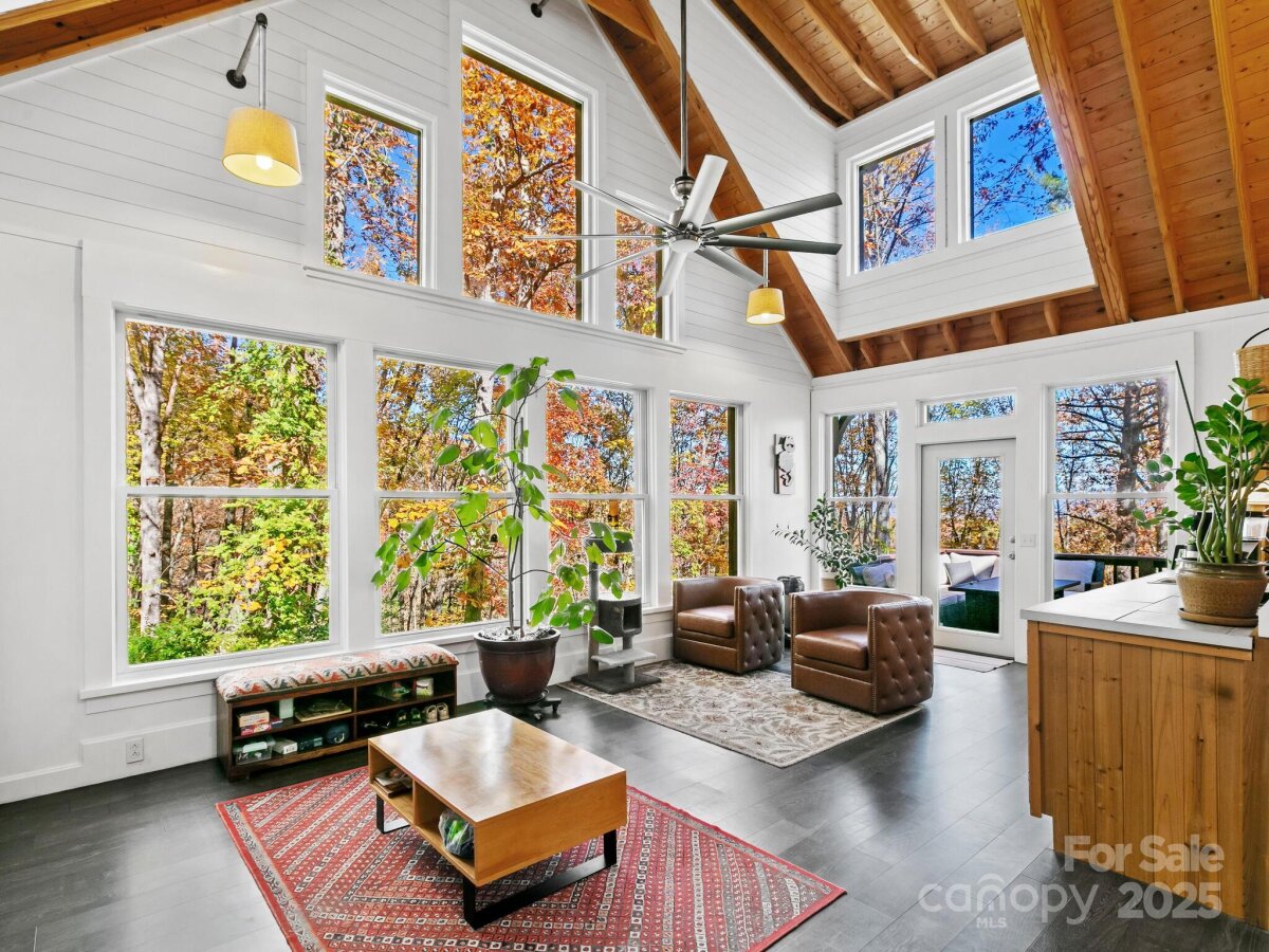 | "Your Private Mountain Oasis on 2.4 Secluded Acres! Escape to this stunning, rustic-contemporary retreat in a desirable location. Nestled in a peaceful, wooded setting, this home offers the ultimate in privacy and modern living. Step inside to a sun-filled, open-concept layout featuring a chef's kitchen with upgraded stainless steel appliances, a gas range, and extensive cabinet space, perfect for entertaining. Enjoy seamless indoor-outdoor living with a massive deck overlooking the tranquil, private acreage – your ideal spot for morning coffee or evening unwinding, complete with winter views. Move-in with peace of mind: a new roof (2021) and updated whole-house electric panel (2020), AC replaced (2019), new retaining wall (2025). Discover a home that has been lovingly maintained and ready for you to move in. Enjoy updated, tiled bathrooms, high beamed ceilings w/skylights & oversized windows to maximize natural light and views. This property offers exceptional versatility, featuring a partially finished basement with a designated workspace/1car garage. In addition, another detached oversized one car- garage with a separate 100-amp service—perfect for a workshop, artist studio, or home gym. It is conveniently located just minutes from Asheville dining, shopping and access to Blue Ridge Parkway outdoor activities! 1 year 2-10 warranty to buyers. | Basic Information