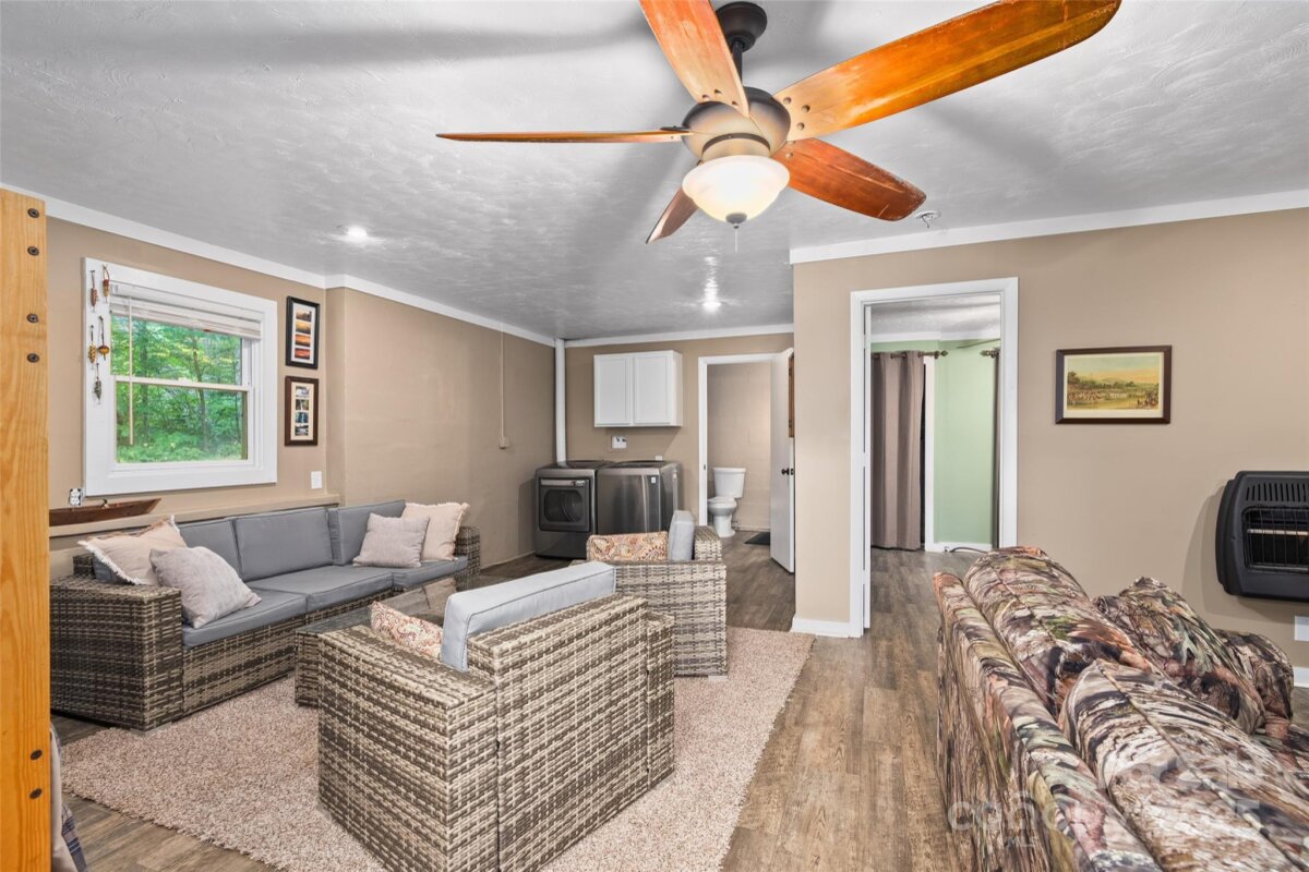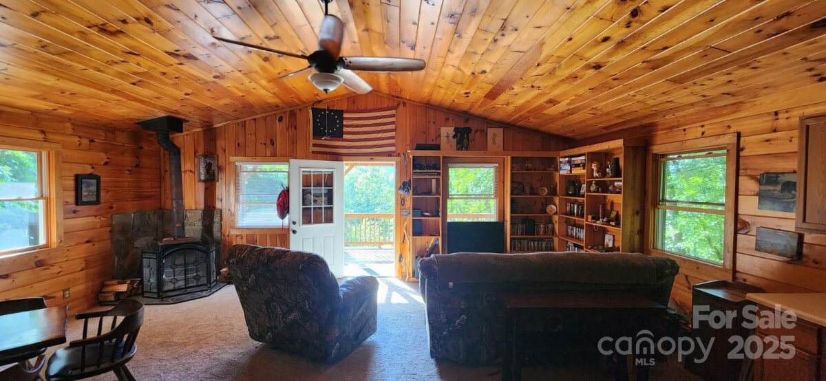 4th of July Special! This charming All-American 1930 farmhouse has a covered front porch and multiple decks overlooking the barn, fields, the Pigeon River, and mountain views. A simple layout with basic construction provides the best pallet to build on what is already here. Fall in love with the vaulted ceilings, free-standing wood stove, and fenced-in yard. Large primary bedroom leads to private deck. Raised bed gardens, rose bushes, and beautiful old trees that bathe the property with shade. The barn features a poured monolithic slab and a separate second-story storage room. Important investments have already been made, solar panels w battery pack to store energy, a newer metal roof, a new well pump, an electrical upgrade, and a mini-split . 2 seasonal springs bordering the property run back to the Pigeon River. Lake Logan is just around the bend. Peaceful country living in wide open spaces, and many nearby places to explore. This home offers a lot and at a price, you can’t refuse.