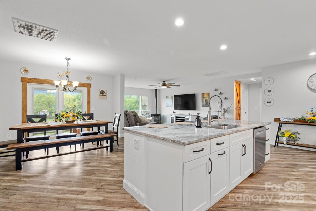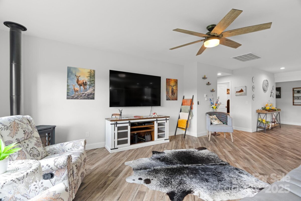 Completely transformed by the previous owner, this home lives like new while offering a serene country setting with sweeping mountain and pastoral views. Thoughtful updates provide over 1,700 square feet of one-level living, plus a 672-square-foot finished bonus room over the garage with a kitchenette and full bath—perfect for guests, hobbies, or a home office. Inside, a modern farmhouse aesthetic blends with historic charm, featuring reclaimed wood from the original 1935 home throughout. The open floor plan is filled with natural light, and a dramatic picture window in the living room frames the mountains like living art. The kitchen is a true centerpiece, with a massive island and breakfast bar, granite countertops, custom backsplash, stainless steel appliances, and a pantry with striking barn doors as a focal point. The spacious primary suite includes dual sinks and a tiled walk-in shower, while nearly every room captures the stunning mountain views. A covered front porch invites relaxation and enjoyment of the scenery. Set on a fully fenced, level, .90-acre lot, the property is just minutes from historic downtown Canton, a short drive to Asheville and Waynesville, and close to Lake Logan and the Blue Ridge Parkway—offering the perfect combination of modern living in a remarkable setting. | Basic Information