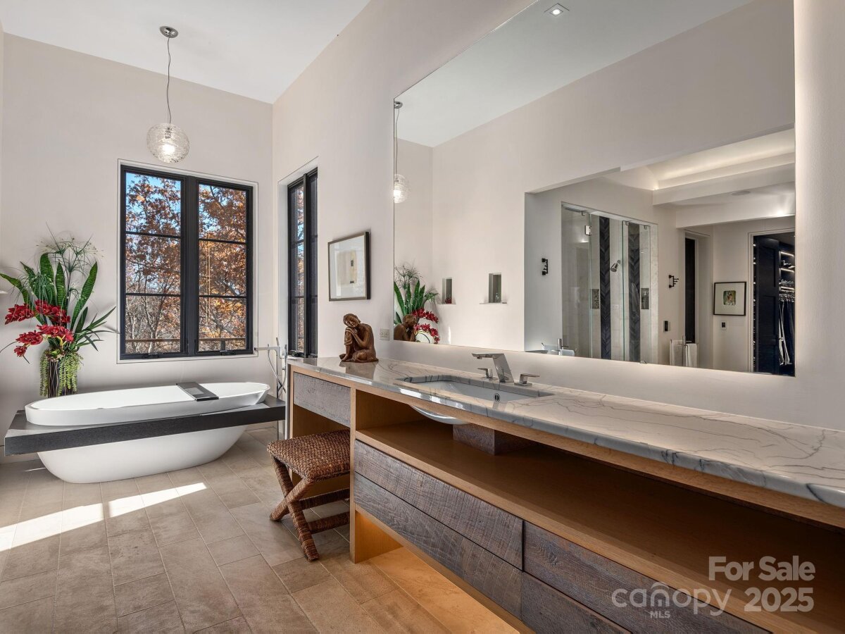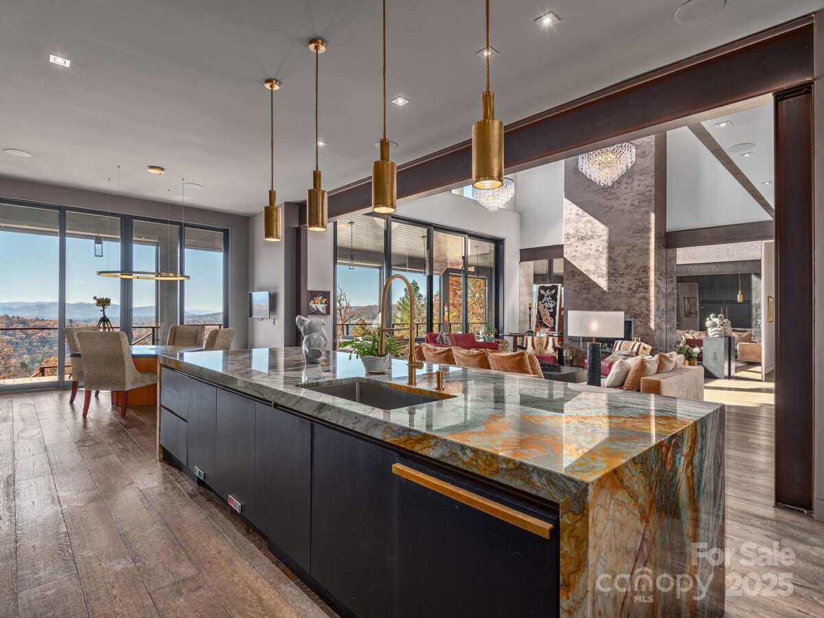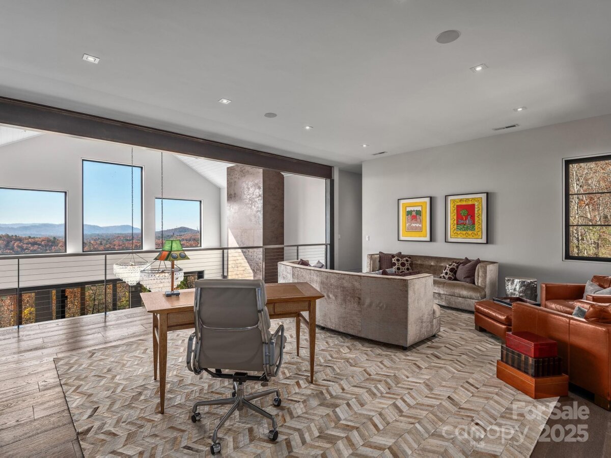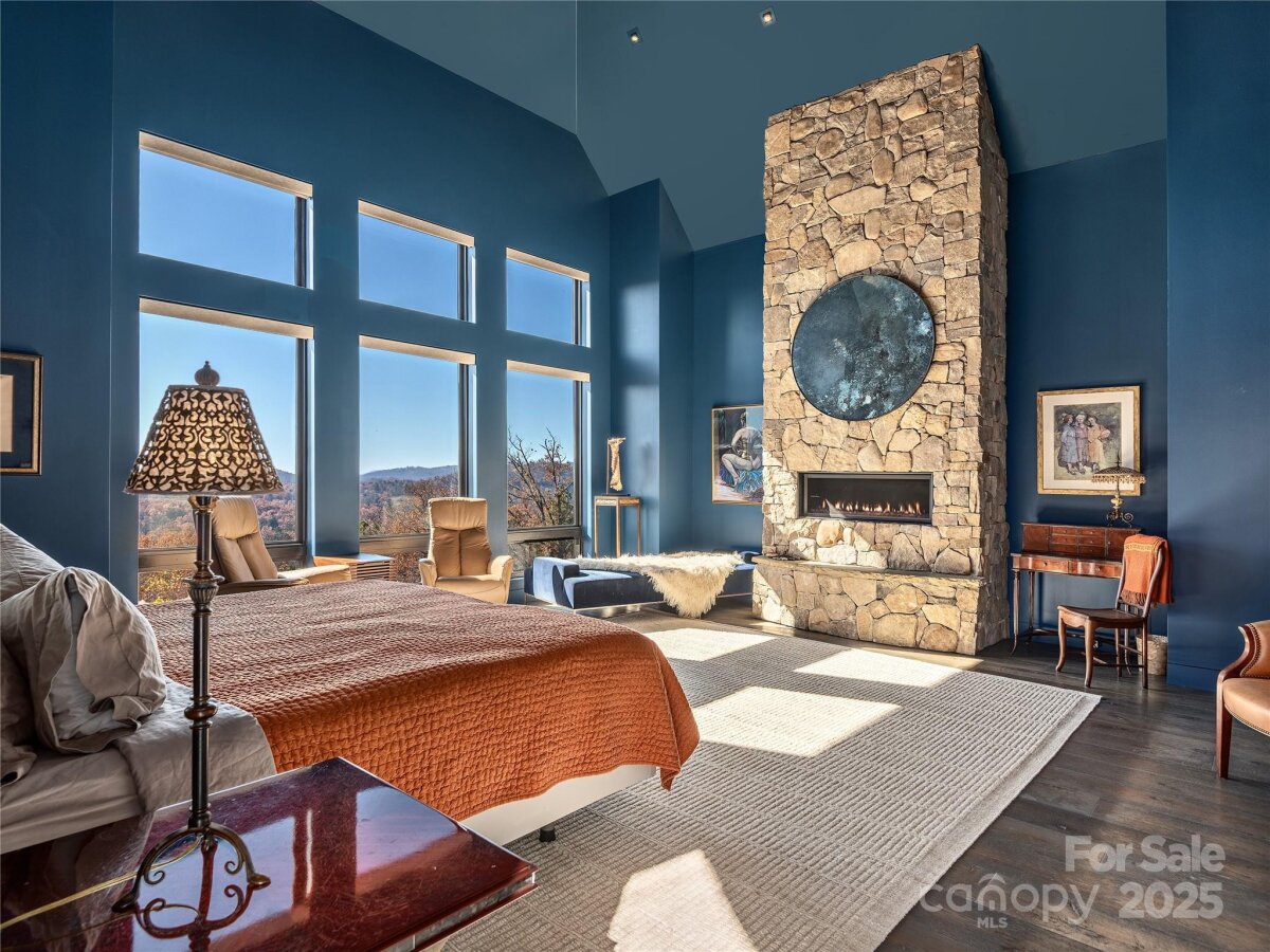 | Extravagant, private 24-acre Fairview estate where industrial-chic meets elevated resort-style living. Over 11,000 SF of sleek contemporary architecture, award-winning spaces, and world-class amenities once dubbed “The Oasis with Everything†by Carolina Home & Garden. The main level is clean and modern: soaring 25’ ceilings, porcelain tile fireplace wall, exposed steel beams, rift & quartered European white oak flooring, high-end custom stone details, and a showstopper Brazilian quartzite island kitchen and turquoise stove with brass range hood. Bedrooms are crisp, contemporary, and frame the mountain views beautifully. The lower level transforms into an entirely different world with a posh private club environment featuring a full bar, state-of-the art theater, game room, spa/steam room, lounge zones, and private gym. The home’s indoor/outdoor living is anchored by a dramatic infinity pool, upper terrace with motorized phantom screens, and multiple fieldstone outdoor fireplaces. This property lives like a private luxury retreat — highly private, all the amenities you could ever need, intentionally self-contained, and purpose-built for both solitude and five-star entertaining. | Basic Information