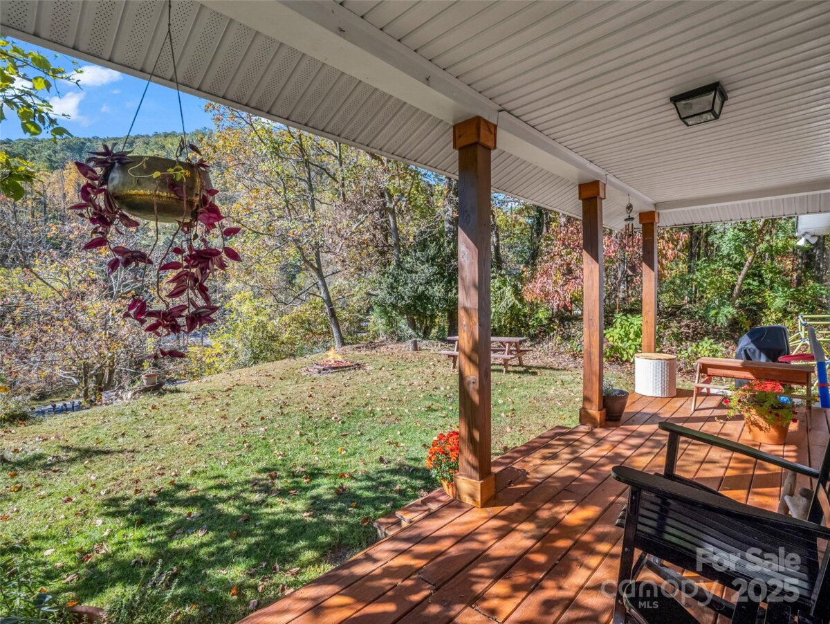 Take the soul scrubbing ride through Old Fort valley to this inviting new home. Year round living on unrestricted property with babbling spring along the boundary runs back to bold Cane Creek. The artesian well provides an abundance of fresh mountain drinking water. Look across to close range mountains beyond the pasture with grazing cows. Rich history encapsulates the nature and natural beauty of this location with stone walkway. Summer trees bathe the wide decks and Brazilian Redwood wall provides peaceful privacy. Prepare delicious meals in the kitchen with quartz countertops, stainless steel appliances, and pantry with custom shelving. Gather with family by the island that doubles as a breakfast bar. Second story features cathedral ceilings, three bedrooms with custom closets, and laundry. Primary en-suite bath may be the most luxurious place in this home, both shower and bathtub and dual sinks. Plenty of parking. Nearby community center with trail, creek, pavilion and playground.