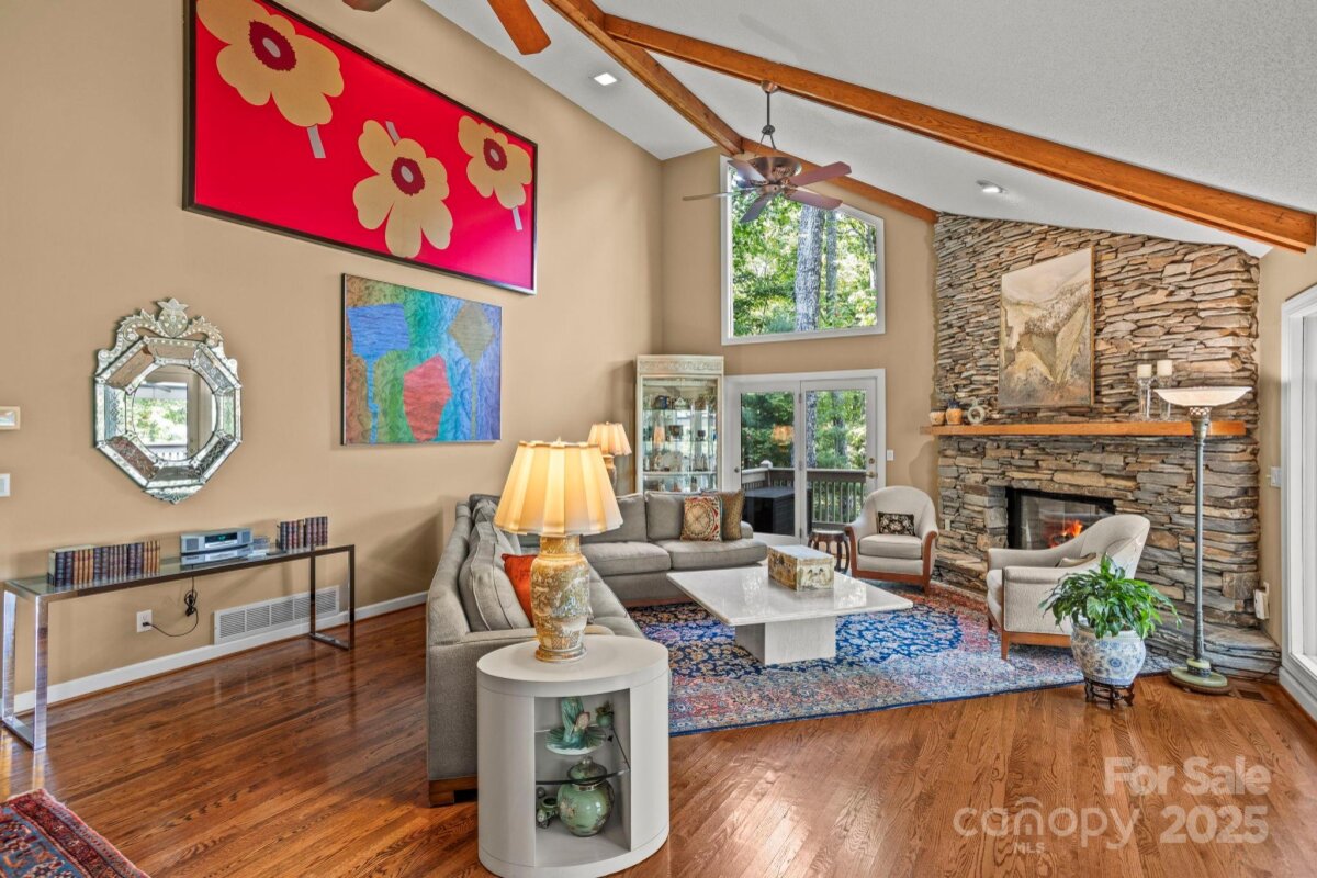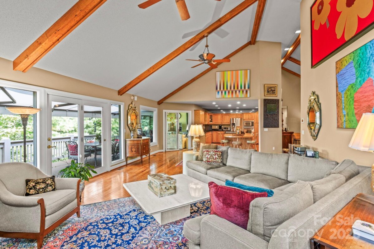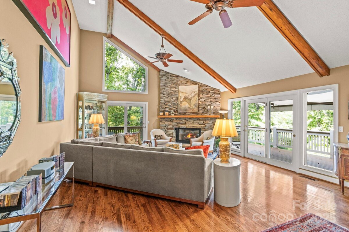 Stunning home in highly sought after Kenmure-a gated golf course community. From the moment you arrive, you'll be captivated by the prime location, level driveway and flagstone walkway that leads to a charming outdoor oasis/patio and covered front porch-perfectly positioned to enjoy the tranquil cascading water feature and private natural surroundings. Step inside to a spacious open concept main level living featuring vaulted beam ceilings and hardwood floors. The great room boasts a dramatic floor to ceiling stacked stone fireplace and abundance of windows/glass doors that flood the space with natural light. Entertain in the formal dining room with a picturesque view of the waterfall or gather in the gourmet kitchen with granite countertops, an island with seating/breakfast bar, custom cabinetry, stainless steel appliances and a built-in desk. The primary suite is a true retreat, complete with high ceilings, walk-in closet, spa-like bath with garden tub, walk-in shower and dual pedestal sinks. A cozy sunroom with wall of windows is not included in the heated SQFT. A well appointed guest bedroom and full bath with double vanity and walk-in shower, add'l bedroom/den along with a laundry room with cabinetry, complete the main level. Downstairs the finished lower level offers ultimate flexibility with a family room, office/flex area, studio with ensuite bath (would make a great guest suite), wet bar area and walk-in closet/storage space. Expansive outdoor living is at your fingertips with a sunroom, open deck with retractable awning, lower level covered deck and screened porch, covered front porch and outdoor patio. Great opportunity to enjoy mountain living at its finest! | Basic Information