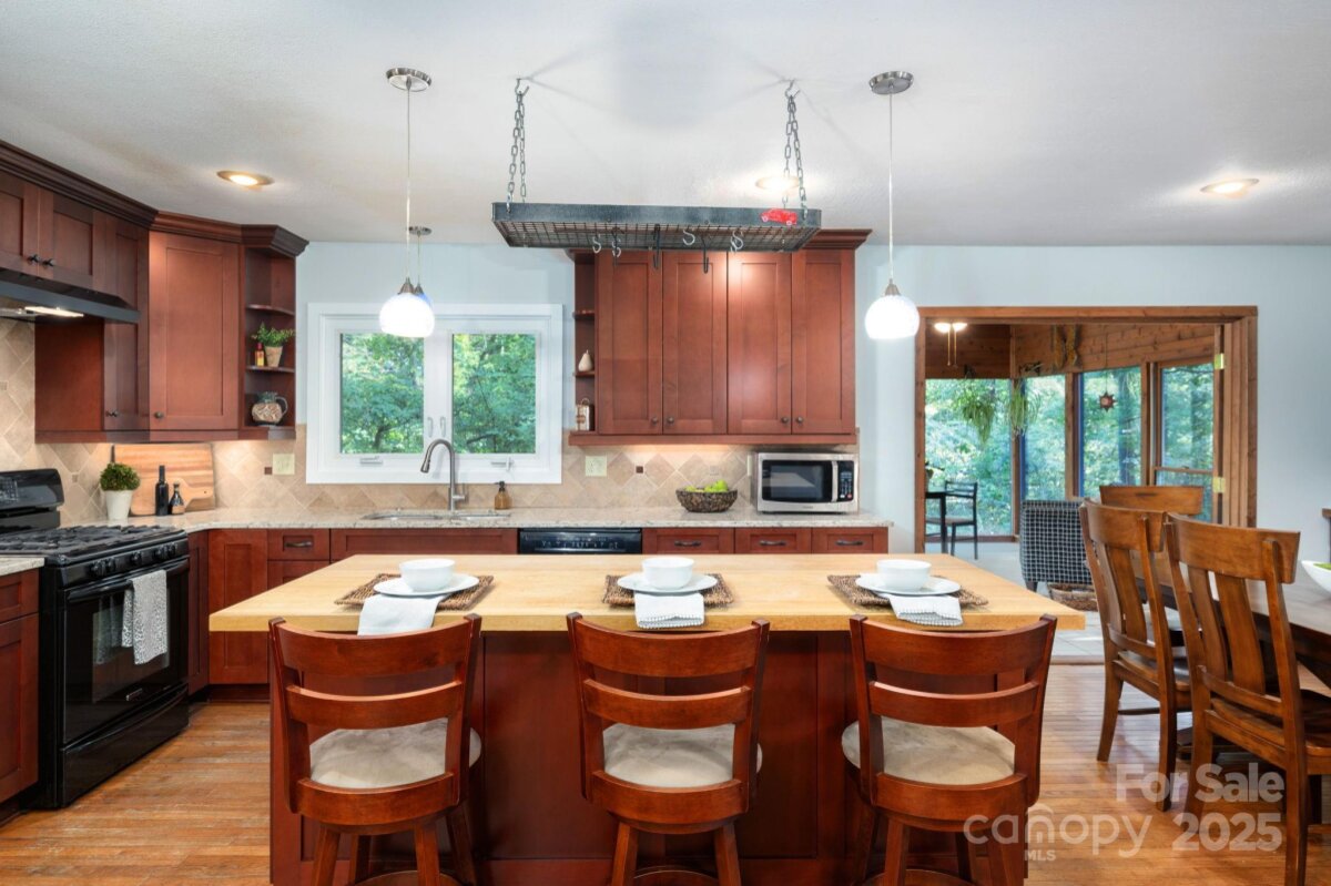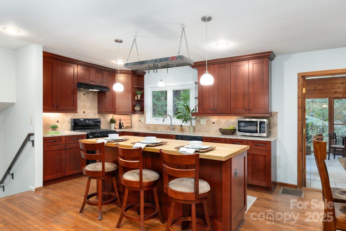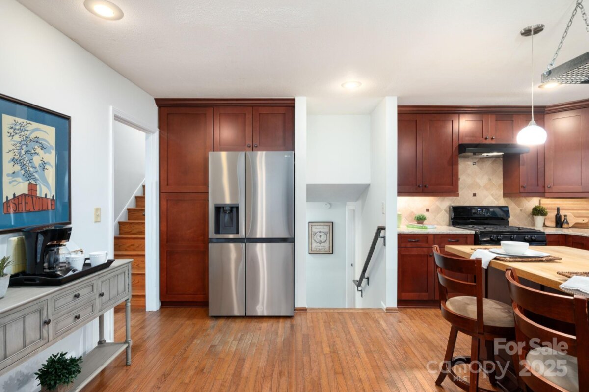 Nestled on a quiet dead-end street in Haw Creek, this spacious tri-level home blends privacy with convenience. A mature Japanese maple, mulched garden beds, and a welcoming front patio set the tone. Inside, the foyer opens to an airy living, dining, and cook’s kitchen with soft-close cabinetry, pull-out pantry shelves, quartz counters, tile backsplash, pendant lighting, and a butcher-block island with counter-height seating. A gas range and hanging pot rack simplify meal prep, and the dining area with built-in sideboard flows to a glass-enclosed, three-season sunroom with vaulted ceiling. Upstairs are three generous bedrooms, including a large primary with a dressing hall of closets and an updated ensuite bathroom with tiled, glass-enclosed shower. The lower level offers a second living area anchored by a floor-to-ceiling stone fireplace, a flexible bonus/gym/guest room, a full bath with corner soaking tub, and a laundry room with tankless water heater. Outdoors, enjoy an expansive rear deck, fenced backyard, and an oversized two-car garage with generous workshop space. Enjoy all Haw Creek offers—Masters Park for wooded trails and green space and “Downtown Haw Creekâ€, where you’ll find casual dining, cozy coffee spots, and laid-back neighborhood bars. Minutes away from Downtown Asheville and the Blue Ridge Parkway! | Basic Information