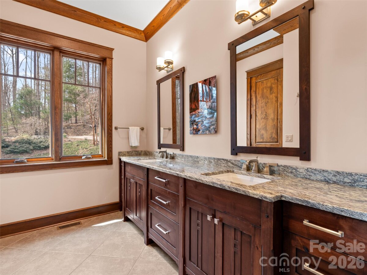 | Nestled within the private gated mountain community of Oleta Falls, this custom Arts & Crafts home offers a rare blend of luxury, privacy, and natural beauty. Set on 1.26 wooded acres at the end of a quiet cul-de-sac, the property provides a peaceful retreat just 20 minutes from downtown Hendersonville. Thoughtfully designed for both comfort and elegance, the home features an open floor plan enhanced by vaulted ceilings, exposed timber beams, and rich Oak and Knotty Alder millwork throughout. Just off the foyer, a dedicated study with a vaulted Pine ceiling and French doors creates a quiet and functional workspace, while a formal dining room and a light-filled sunroom adjoining the kitchen offer inviting spaces for both everyday living and entertaining. The chef’s kitchen is beautifully appointed with custom cabinetry and flows seamlessly into the main living areas. The main-level primary suite is ideally positioned to capture rear mountain views and includes direct access to the deck for a private outdoor escape. The terrace level extends the living space with two guest suites, a spacious family room, and a versatile flex room ideal for a den or workout area. Additional features include a workshop and garden shed, perfect for hobbyists or extra storage. Outdoor living is equally appealing with a main-level deck, a terrace-level stone patio, terraced gardens, perennial landscaping, a paver driveway, and seasonal mountain views that enhance the setting year-round. An adjacent 1.35-acre homesite is also available, presenting a rare opportunity for increased privacy or future expansion. Oleta Falls encompasses more than 400 pristine acres with only 78 homesites and offers miles of hiking trails, a breathtaking 40-foot waterfall, scenic mountain views, and a clubhouse complete with a pool and fitness center, creating a truly exceptional Blue Ridge Mountain lifestyle. The Main-level Primary Suite is perfectly positioned to capture rear Mountain Views and offers direct access to the deck, along with an Ensuite bathroom with dual walk-in closets, granite vanities, a walk-in shower, and a private water closet. A dedicated study with a Vaulted wood ceiling and French doors is located off the foyer, providing a quiet and functional workspace. Completing the main level is a spacious laundry/utility room with custom cabinetry, pantry, drop zone, and a powder bath. The Fully Finished Lower Level includes Two Ensuite Bedrooms, a spacious Family Room with a Fireplace and custom bar, an additional flex room perfect for a den/workout room, a workshop, and a garden shed ideal for tools, hobbies, or outdoor gear, along with generous additional storage. Outdoor living is equally inviting with an upper deck, lower stone patio, terraced gardens, perennial landscaping, a paver driveway, and seasonal mountain views. Additional highlights include 10' solid doors, a whole-house generator, three-zone geothermal HVAC, oversized two-car garage, three utility sinks, and direct access from the garage to the basement and workshop via an interior staircase, along with a community well and high-speed internet. An adjacent 1.35-acre homesite is also available, offering a rare opportunity for added privacy. Showings available starting Monday, 3/30. | Basic Information