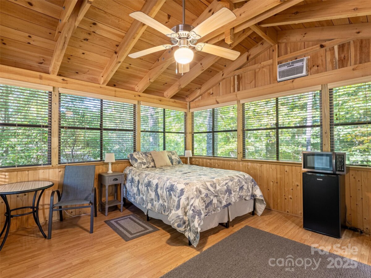 Welcome to 31 Boulder Drive — a unique RV lot extension designed for comfort, convenience, and flexibility. This 1-bedroom, 1-bath unit easily accommodates up to a 45-foot motorcoach and offers a welcoming retreat with both indoor and outdoor living spaces. Comes fully furnished, only the outdoor grill is excluded. Inside, you’ll find a queen bed, dresser, closet, table and chairs, and a cozy living area with wood walls, laminate flooring, ceiling fan, and heaters in both the bathroom and living room. Additional features include two window units, a mini fridge, microwave, coffee maker, and built-in blinds for added privacy. Relax on the screened porch, complete with a table, chairs, and umbrella for outdoor enjoyment. The property also includes a storage shed (formerly with washer/dryer hookups), an on-demand hot water heater, and a double roof construction for peace of mind. Conveniently set up for RV living with added comforts, this property is ready for your mountain getaway or seasonal escape. | Basic Information