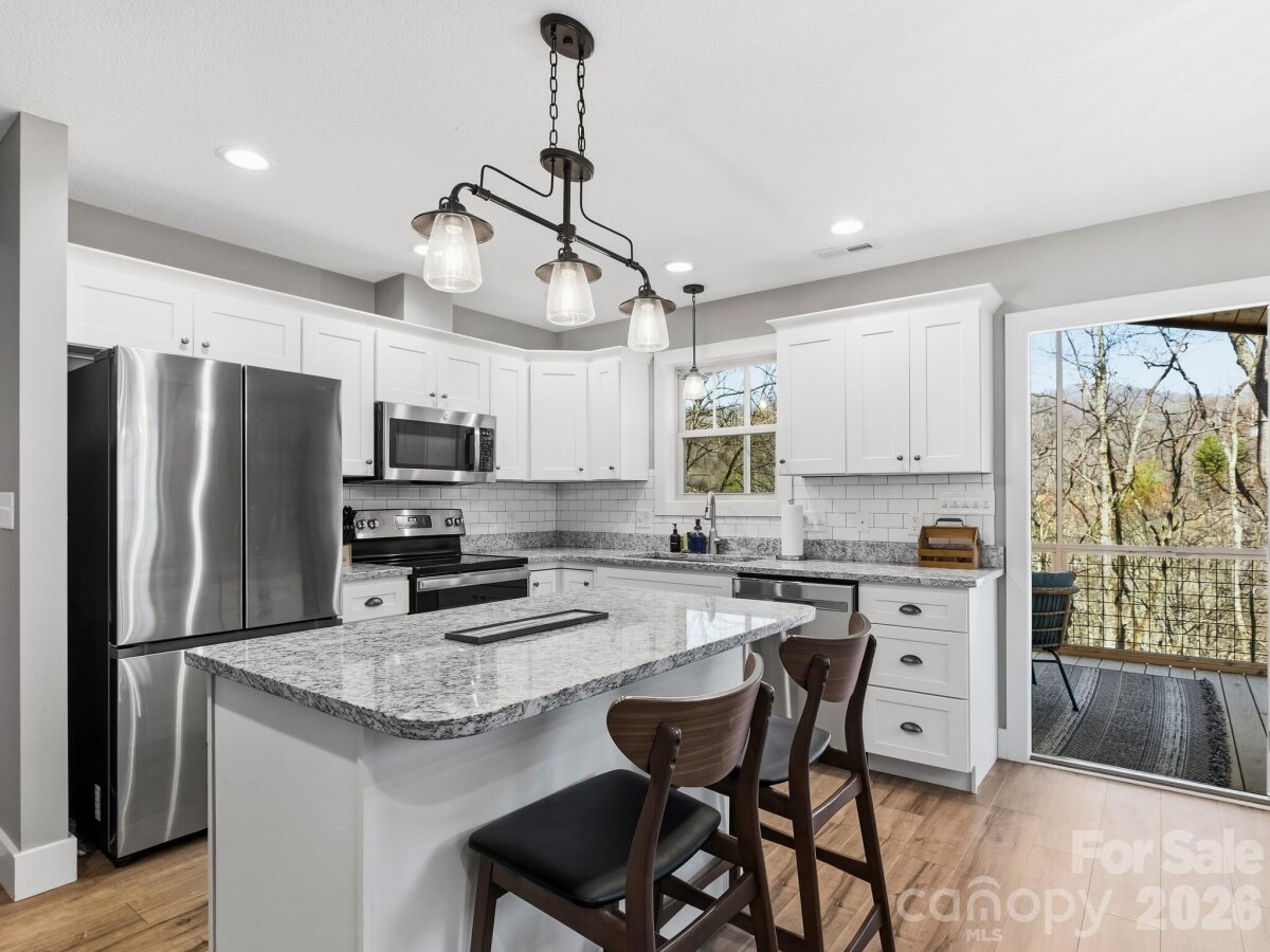 | Nearly new 2023-built mountain retreat on 1.77 private acres just 2 miles from downtown Mars Hill, offering the ideal balance of comfort, efficiency, and lifestyle. The main level features an open floorplan with durable luxury vinyl plank flooring, a gas fireplace, and a well-appointed kitchen with granite countertops, subway tile backsplash, stainless steel appliances, vented hood, and undermount workstation sink. Just off the dining area, a vaulted, fully screened porch with vaulted pine tongue-and-groove ceiling and ceiling fan creates a true outdoor living space with sweeping year-round mountain views, perfect for dining, relaxing, and entertaining in comfort. The primary suite includes a tiled walk-in shower with sunflower head, soft-close cabinetry, and a walk-in closet with built-in system. The lower level offers two additional bedrooms, a full bath, interior and exterior access, covered deck, and a bonus room already plumbed and wired for a future kitchen, ideal for guests, extended living, or potential rental use. Side-by-side laundry and utility room provide added functionality. Exterior features include a covered rocking chair front porch with stacked stone columns, pine tongue-and-groove ceiling, recessed lighting, gutter guards, low-maintenance vinyl siding, and a thoughtfully designed firepit area with Adirondack seating to enjoy the peaceful mountain setting. Positioned on a north-facing slope, this home stays naturally cooler in the summer, reducing cooling demand by approximately 10–20% while enhancing day-to-day comfort. Property improvements include a French drain system along the rear of the home for proper water diversion and newly planted juniper ground cover for slope stabilization, along with established rhododendron. Located 2 miles near local favorites including Camden Coffeehouse, restaurants, brewery, and Mars Hill University, with easy access to Bailey Mountain Preserve (5 miles), Hatley Pointe Ski Resort and Zip N Slip tubing (6 miles), Appalachian Trail access at Big Bald (8 miles), and Laurel River recreation (10 miles). Just 15 minutes to Weaverville and 25 minutes to Asheville. Nearly new condition, flexible layout, low utility costs, and a private mountain setting make this an excellent option for full-time living, second home, or investment opportunity. | Basic Information
