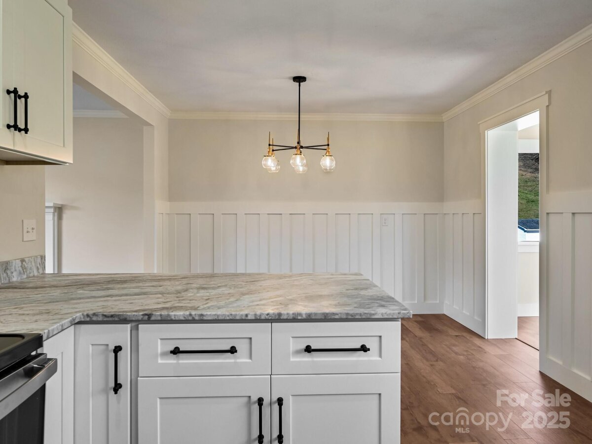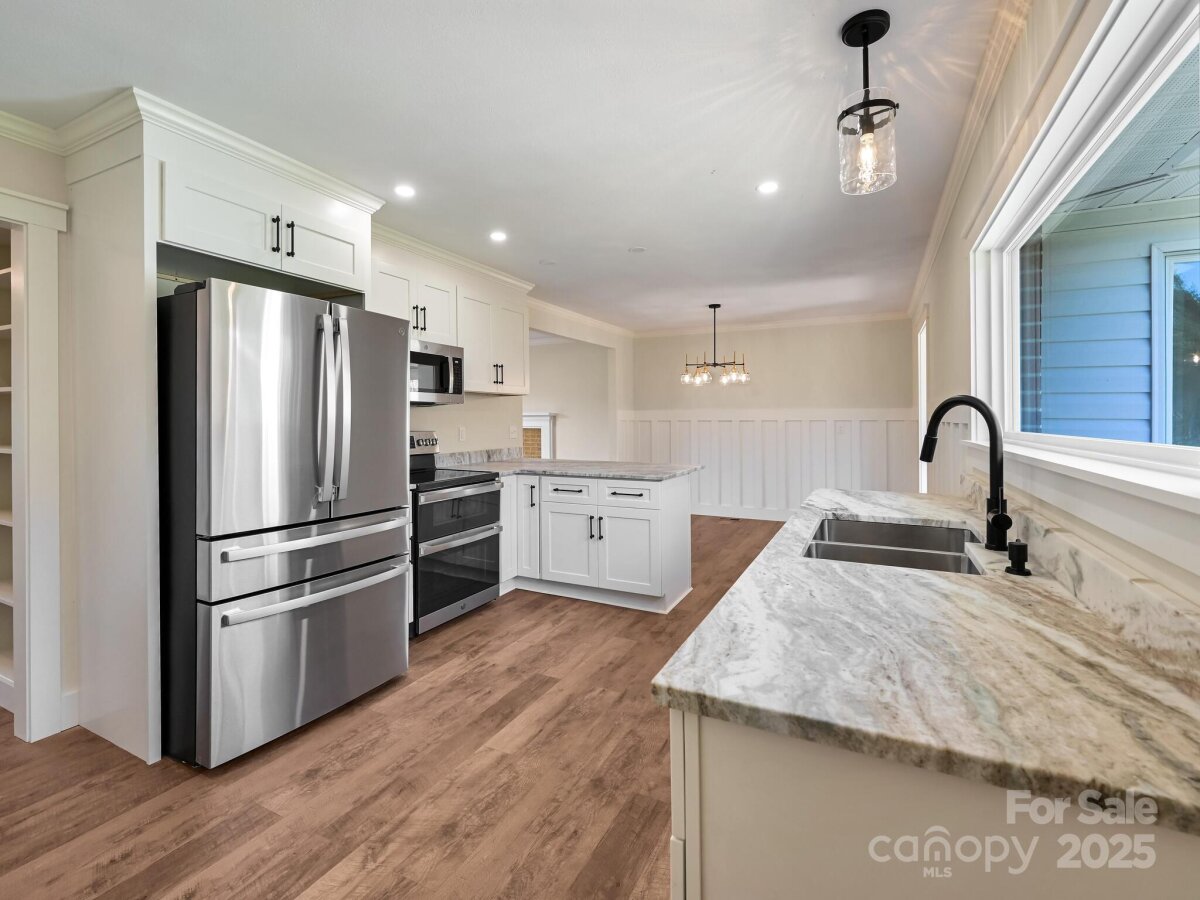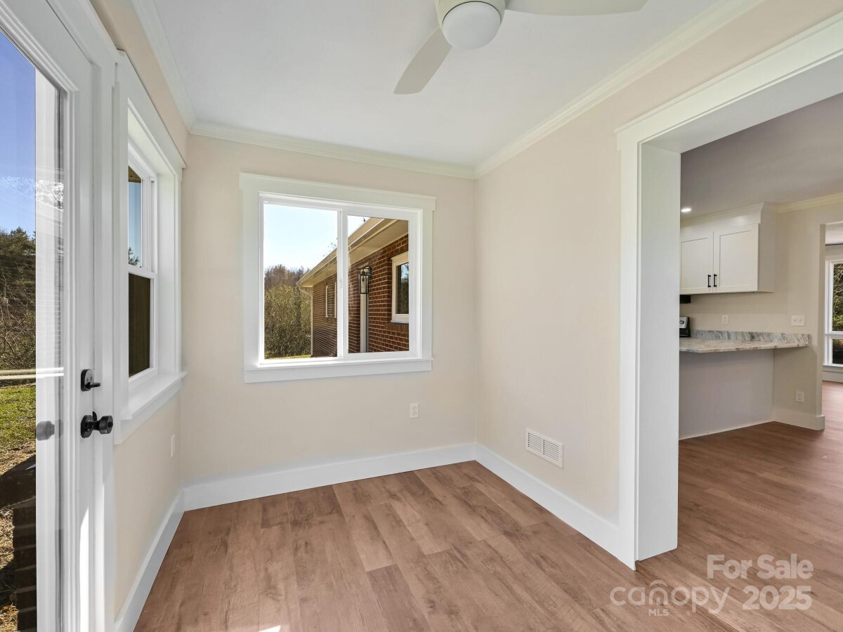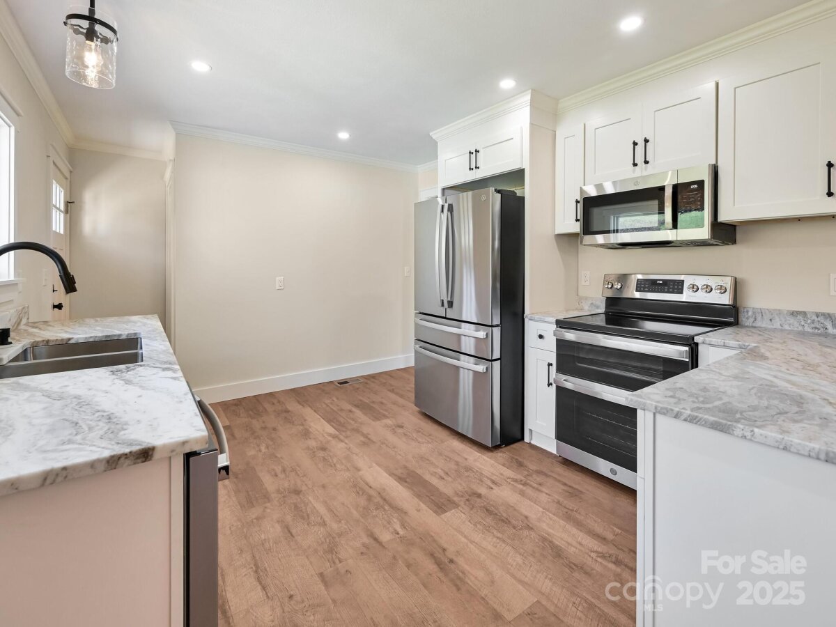 | Stunning remodeled brick ranch home on .85 sprawling acres. Enjoy the long range pastoral views from your back deck. This home offers 3 bedrooms and 1.5 custom baths all on the main level with over 2,025 finished sq ft. Interior features include beautiful trim and crown molding throughout the main level. Fireplace located in the living room, luxury vinyl and tile flooring throughout the house, and board and batten accent walls. Kitchen includes stainless steel appliances, breakfast bar that accommodates 3-4 bar stools. Shaker style kitchen cabinets that offers a lot of storage and leather textured granite countertops. Just off the kitchen and dining room you will find a sunroom/office with interior/exterior access to the back yard. Enjoy custom lighting and plumbing fixtures throughout the home. Downstairs in the basement you will find a large oversized laundry room that includes white shaker cabinets, folding area, and utility sink. There is also a large closet that can be used for utility storage and a large oversized den/playroom. In the unfinished portion of the basement there is a large utility room that can be used for additional storage or workshop and a one car garage. Detached spacious storage building that includes electricity, custom roll up door and work space. Situated in a great location being only 15 minutes to Weaverville & 22 minutes to Asheville. Downtown Marshall offers local restaurants, brewery, coffee shop & access to the French Broad River! | Basic Information