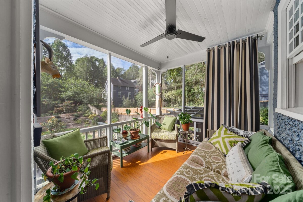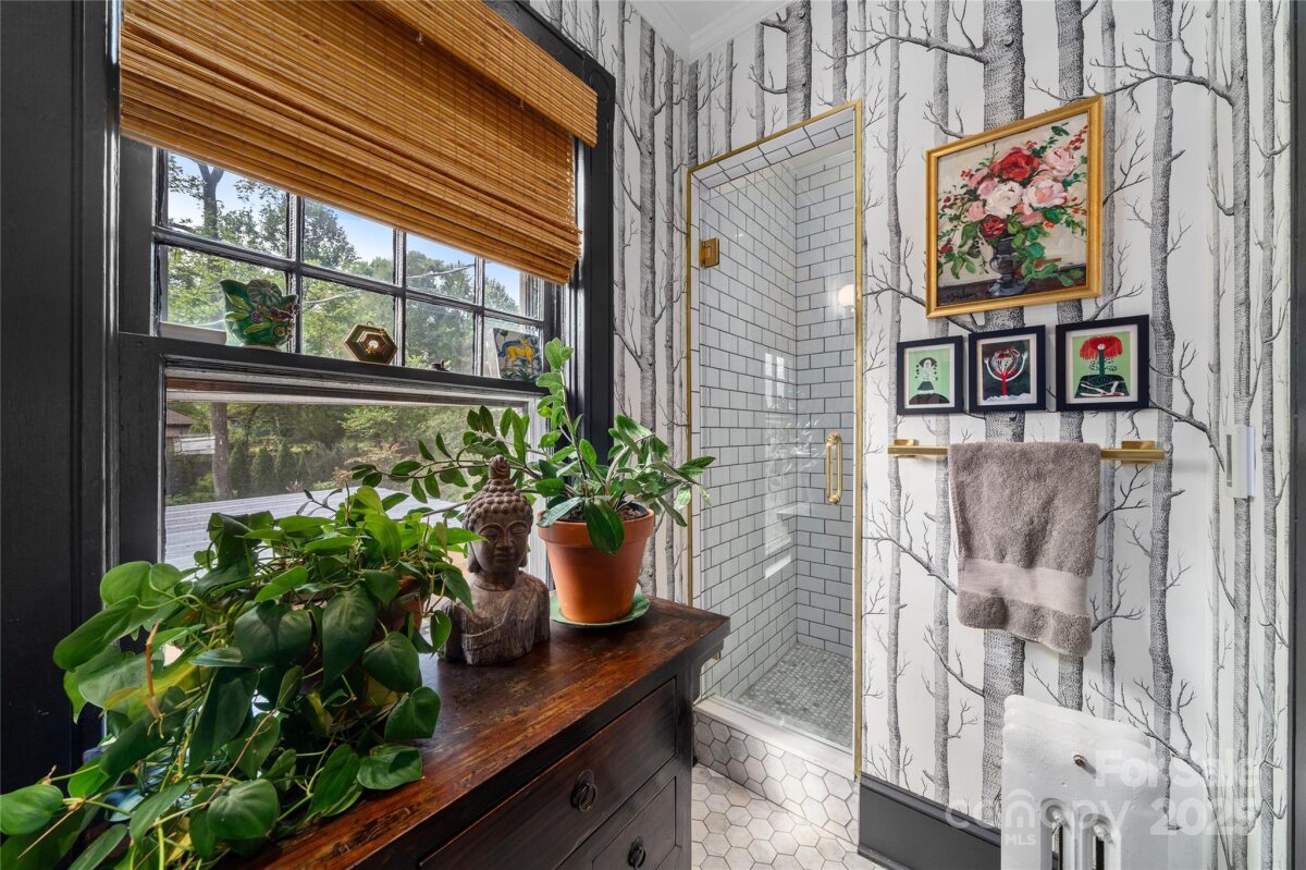 Charm and outdoor living are abundant in this Montford Gem. Perched high above street level on a spacious corner lot, this home boasts a rare garage with a rooftop patio, nestled among old-growth trees and wide sidewalks. The delightful outdoor spaces and gardens are perfect for entertaining and offer dynamic views at every turn. Located on an ideal street in the heart of Montford, this home offers excellent walkability to downtown, groceries, popular eateries, craft cocktails, breweries, parks, gardens, greenways, and more. Come explore and uncover the special surprises this home has to offer. Enjoy the double bonus of heated spaces not reflected in the square footage, providing versatile indoor retreats beyond the main level. Upstairs, you’ll find a cozy, panoramic loft, while downstairs reveals an upscale, magical Ken Den with a gym and full laundry facilities. Here, you’re right in the heart of town yet feel tucked away from it all.