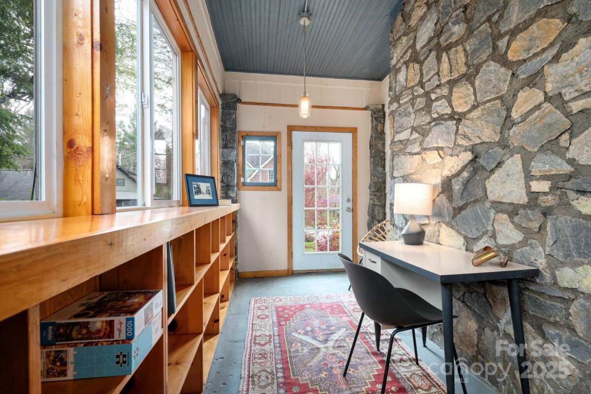Charm and outdoor living are abundant in this Montford Gem. Perched high above street level on a spacious corner lot, this home boasts a rare garage with a rooftop patio, nestled among old-growth trees and wide sidewalks. The delightful outdoor spaces and gardens are perfect for entertaining and offer dynamic views at every turn. Located on an ideal street in the heart of Montford, this home offers excellent walkability to downtown, groceries, popular eateries, craft cocktails, breweries, parks, gardens, greenways, and more. Come explore and uncover the special surprises this home has to offer. Enjoy the double bonus of heated spaces not reflected in the square footage, providing versatile indoor retreats beyond the main level. Upstairs, you’ll find a cozy, panoramic loft, while downstairs reveals an upscale, magical Ken Den with a gym and full laundry facilities. Here, you’re right in the heart of town yet feel tucked away from it all.
