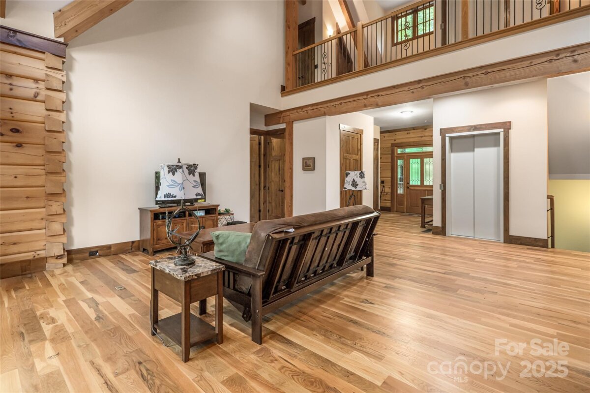 Welcome to Northern White Pine Lodge, a refined mountain retreat in the gated enclave of Whisper Mountain. This handcrafted home captures the essence of mountain living with timeless log-and-stone craftsmanship, modern comforts, and architectural elegance designed to harmonize with its pristine setting. From the moment you arrive, the home rises gracefully from the mountainside with gabled rooflines, natural stonework, and wide wraparound porches that invite you to slow down and savor the forest around you. Inside, soaring ceilings, exposed beams, and expansive windows frame the outdoors. A dramatic stone fireplace anchors the great room, setting the tone for cozy evenings or lively gatherings. The primary suite on the main level offers a private sanctuary with direct access to the deck, perfect for greeting the morning mist or unwinding at sunset. Convenience meets luxury with features like an elevator providing effortless access to every level. Upstairs, a sunny loft and well-appointed bedroom create restful guest spaces. Life at Whisper Mountain is about more than just a home, it’s about lifestyle. Residents enjoy access to the Sky Valley Lodge, stone walking trails, spring-fed creeks, and miles of preserved green space, creating the feel of a private national park. Whisper Mountain’s vision of sustainability and serenity ensures that this rare property not only celebrates its natural surroundings but protects them for generations to come. Northern White Pine Lodge isn’t just a home, it’s a legacy. A place where craftsmanship, community, and nature converge, offering the rare chance to live the mountain dream in one of Western North Carolina’s most sought-after settings. STR friendly. Indoor resistance pool partially installed. | Basic Information