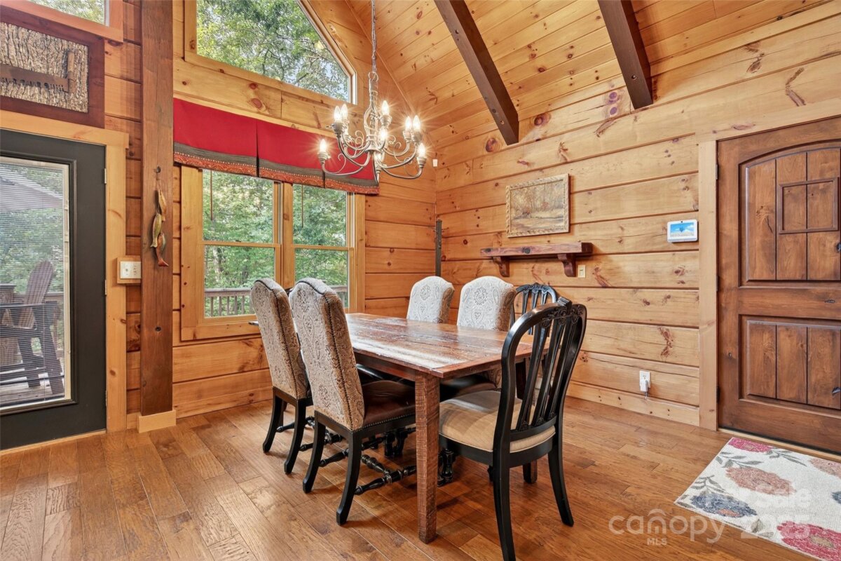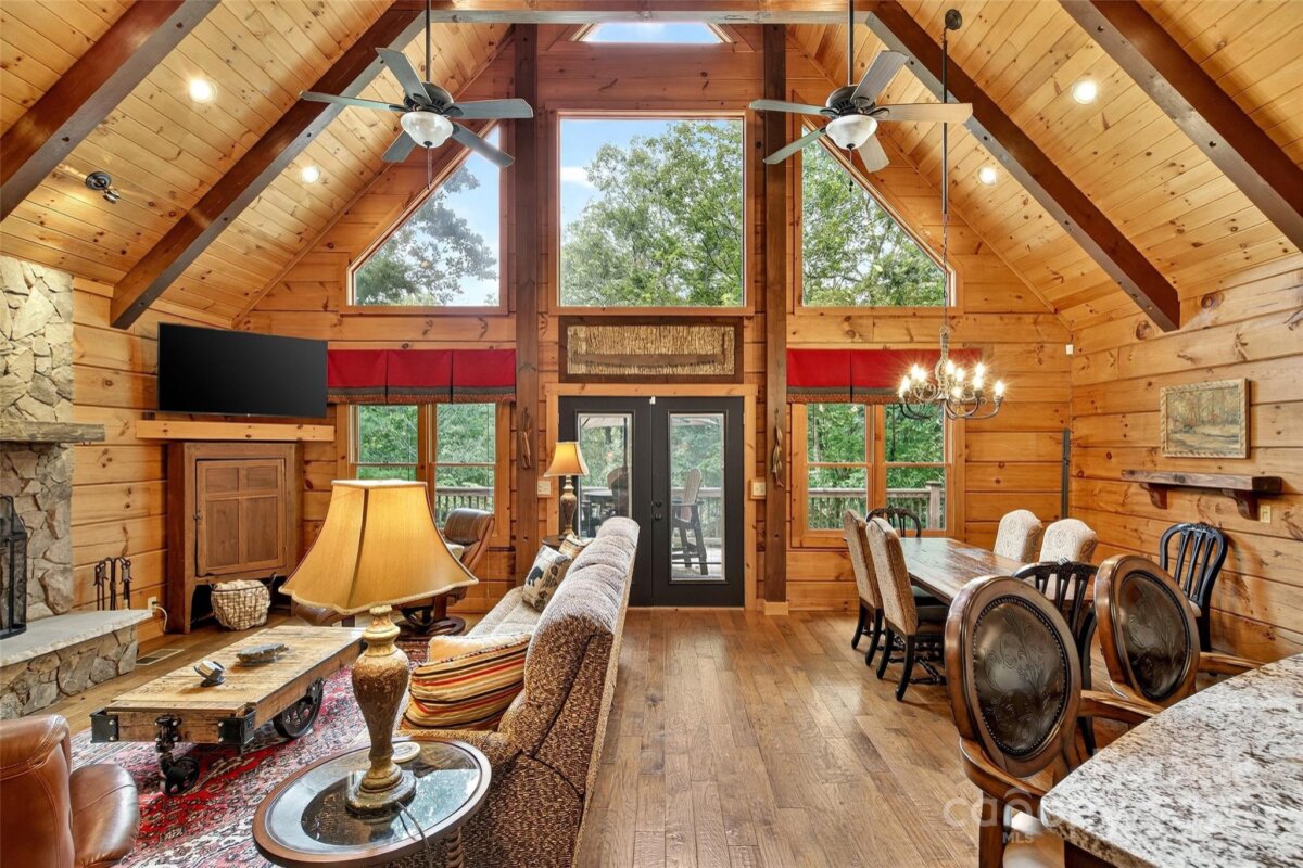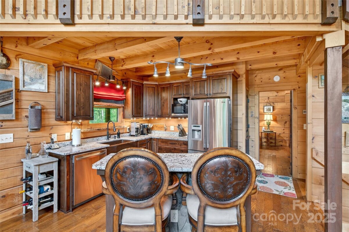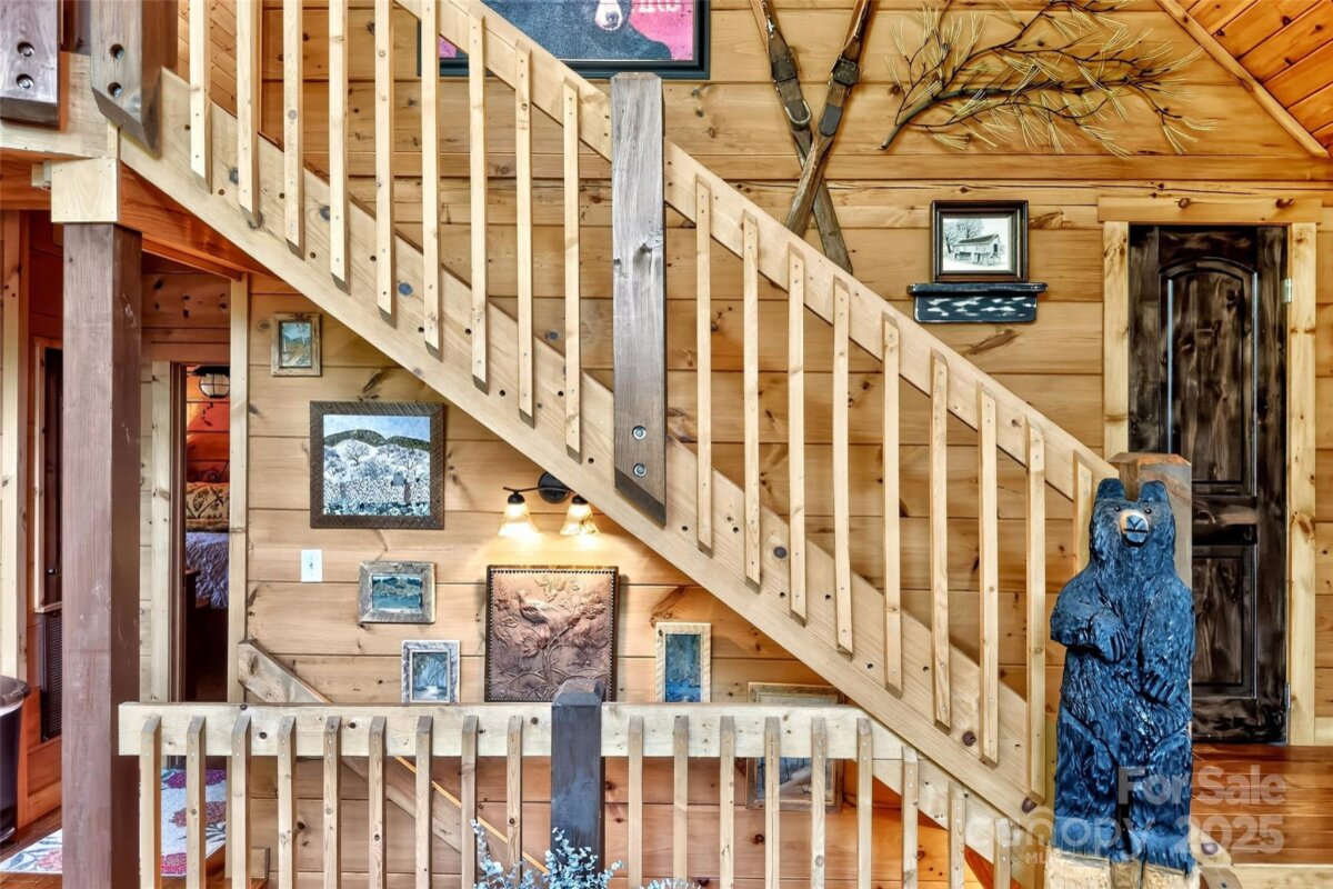 Escape the ordinary in this stunning, custom-crafted cabin where rustic charm meets modern luxury. Nestled on private, wooded lots containing 4.46 acres with approx. 122 ft. on Big Crabtree Creek. Stunning fall/winter view of the Black Mountain Range. This secluded retreat offers the ultimate escape without sacrificing upscale comforts. Easy access to Hwy 19 and Hwy 226. Fully furnished and move in ready. Due to closing other properties, seller requests a closing on or after 1/1/2026. As you enter, vaulted ceilings and exposed wooden beams create a breathtaking great room anchored by a floor-to-ceiling stone fireplace. The mantel is an original chestnut timber log from an early 1900's log cabin. The open floor plan is perfect for hosting memorable gatherings. The kitchen boasts granite countertops, stainless steel appliances, and an island with rock accents. A powder-room and pantry are just steps from the living/dining/kitchen area. Main level primary with en suite bath, includes king bed and cedar lined closets. The loft bedroom was used as a second primary with king bed and en-suite bathroom. Both bedrooms have custom curtains and Kincaid and Hooker furniture. The loft office/reading nook is comprised of a separate sitting area with a great fall/winter view of the Black Mountains. The main level and loft area floors are hand hewed hardwoods. The front door and all interior doors were custom built with knotty alder. The large picture windows in the living room are high wind rated . Separate AC/Heat systems for the main level and loft. Both systems can be monitored and controlled remotely using the Trane Home app. The finished basement carries the same attention to quality and uniqueness. There is an additional living area with stone accent walls, custom-built wood stove, full bar area and island with poplar bark highlights. A Bose surround sound system has been included for entertainment ease. This gathering area is perfect for quiet relaxation or entertaining guests. The basement also includes a full bathroom with stone accents and two bedrooms/bonus-rooms. One room includes a queen log bed, and the other has twin log bunk beds. Waterproof vinyl plank flooring with a cork backing covers the basement level. Exterior features include: A large wrap around deck off the main level with rockers and ceiling fans which offers a tranquil space to enjoy the peace and quiet of nature. A covered rock paver patio off the basement level provides an additional secluded area to quietly appreciate nature. Follow the rock paver platform steps to a large fire-pit. Experience the perfect balance of rugged beauty and refined living in this timeless masterpiece. Additional home features include: Chimney cap is custom built from solid copper in a “covered wagon†style to prevent water and animals from coming down the chimney. Loop driveway for easy access, with widened areas for parking. Gated community with remote opener for cars. CPI monitored alarm system, including an exterior camera which monitors the driveway and anyone on the walkway. System can be controlled remotely through the CPI app. Four Blink cameras for additional monitoring and wildlife viewing through the Blink app. Whole house water filters. Quarterly pest control service and annual termite inspection by Terminix since home was built. Solar landscape lighting in front walkway area. Minimal yard maintenance. No lawn to mow, as the yard was kept natural. Path to Big Crabtree Creek is just off the left corner of the home and is marked with reflective survey tape, start at the big rock below the deck and go stright. | Basic Information