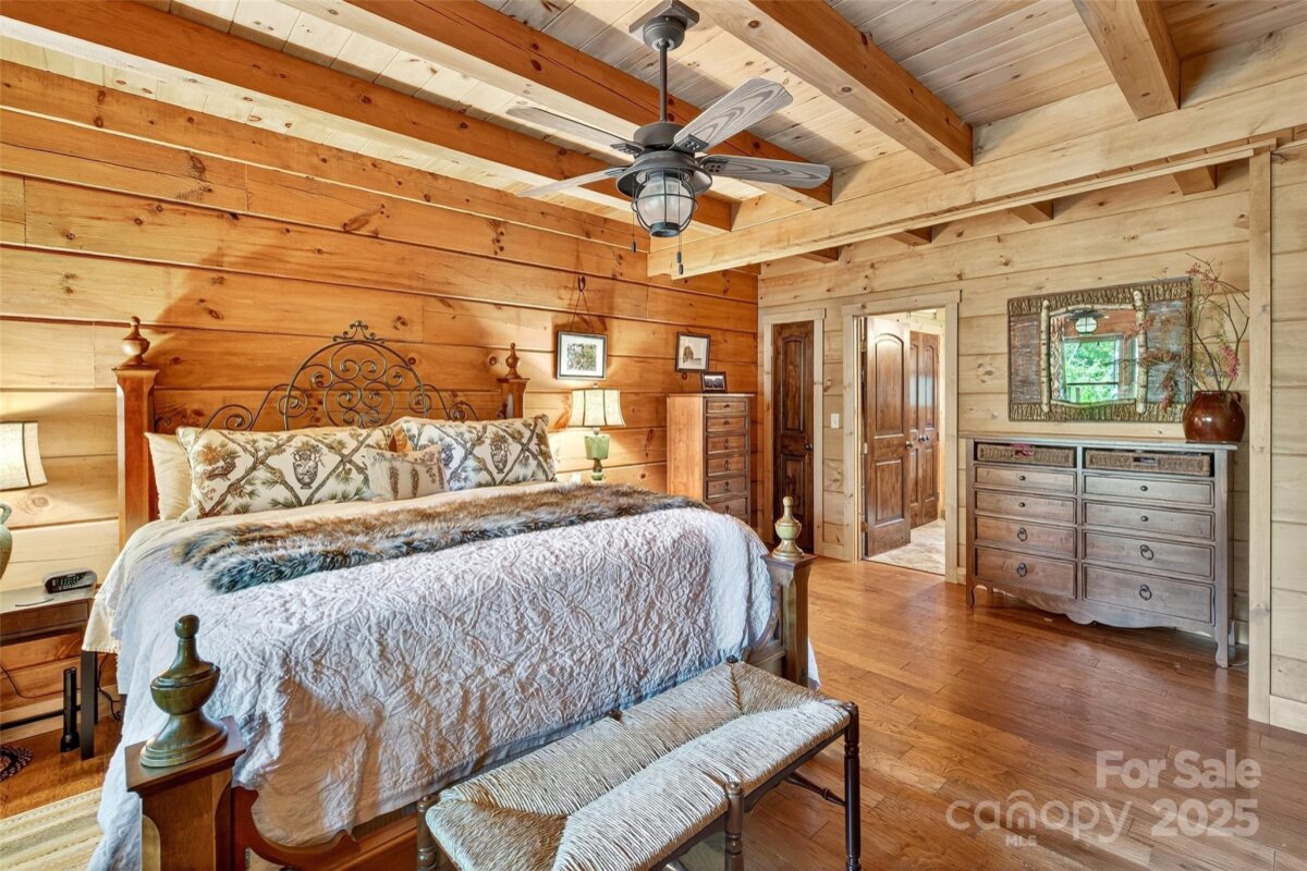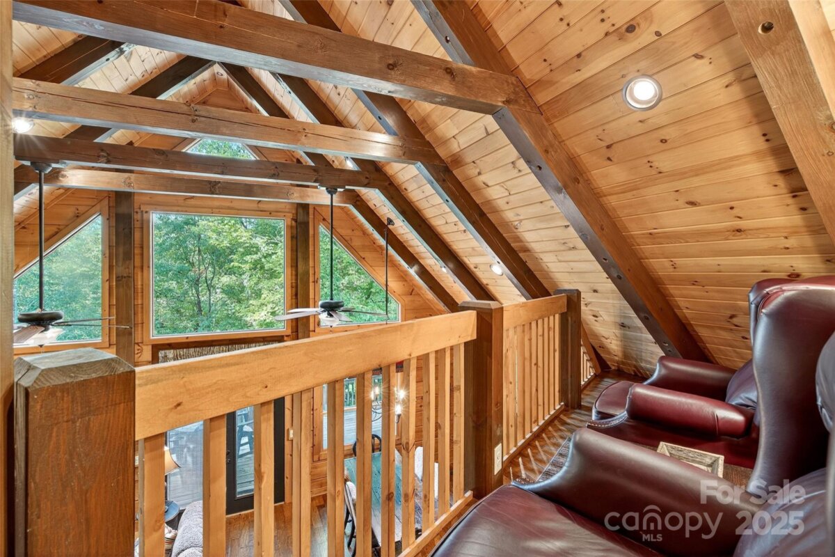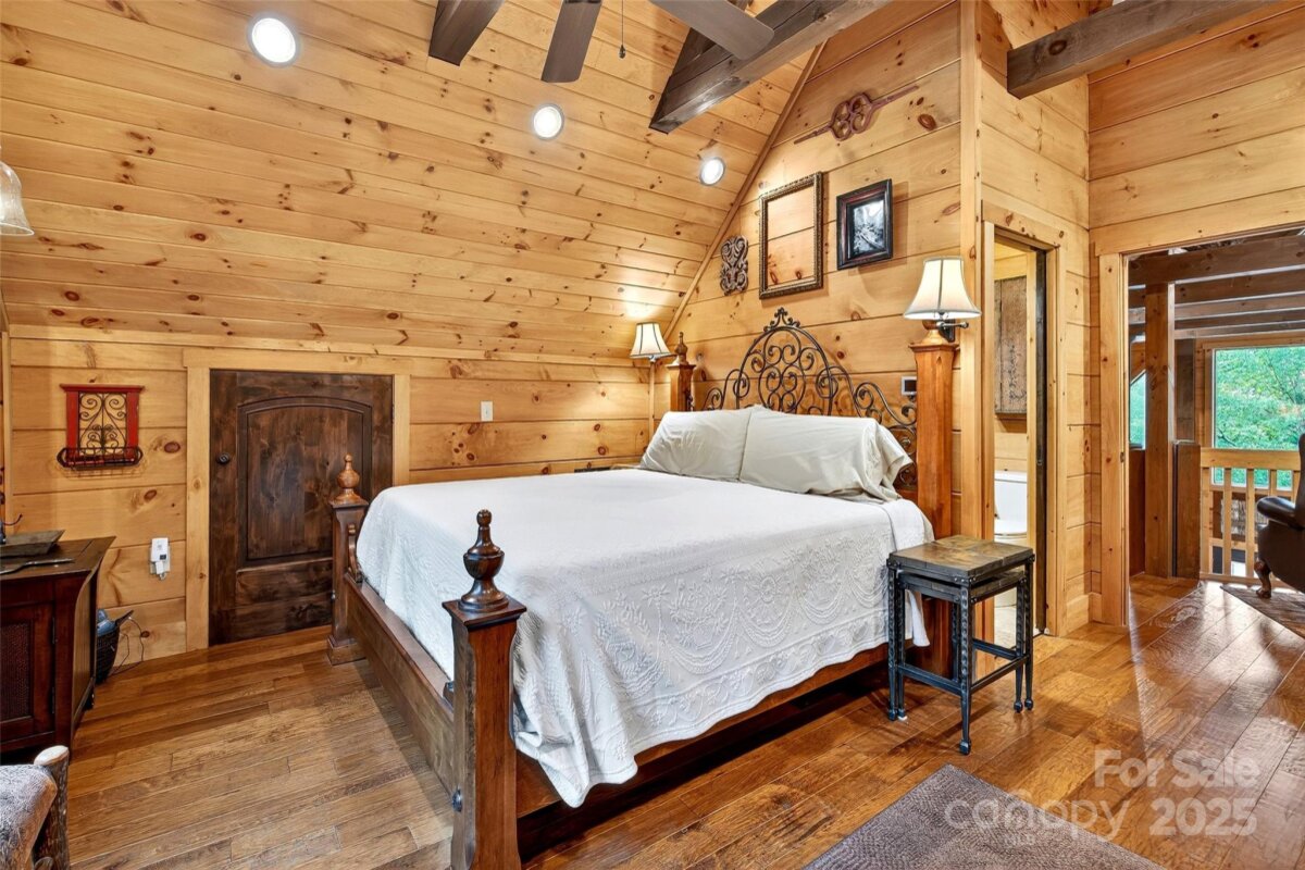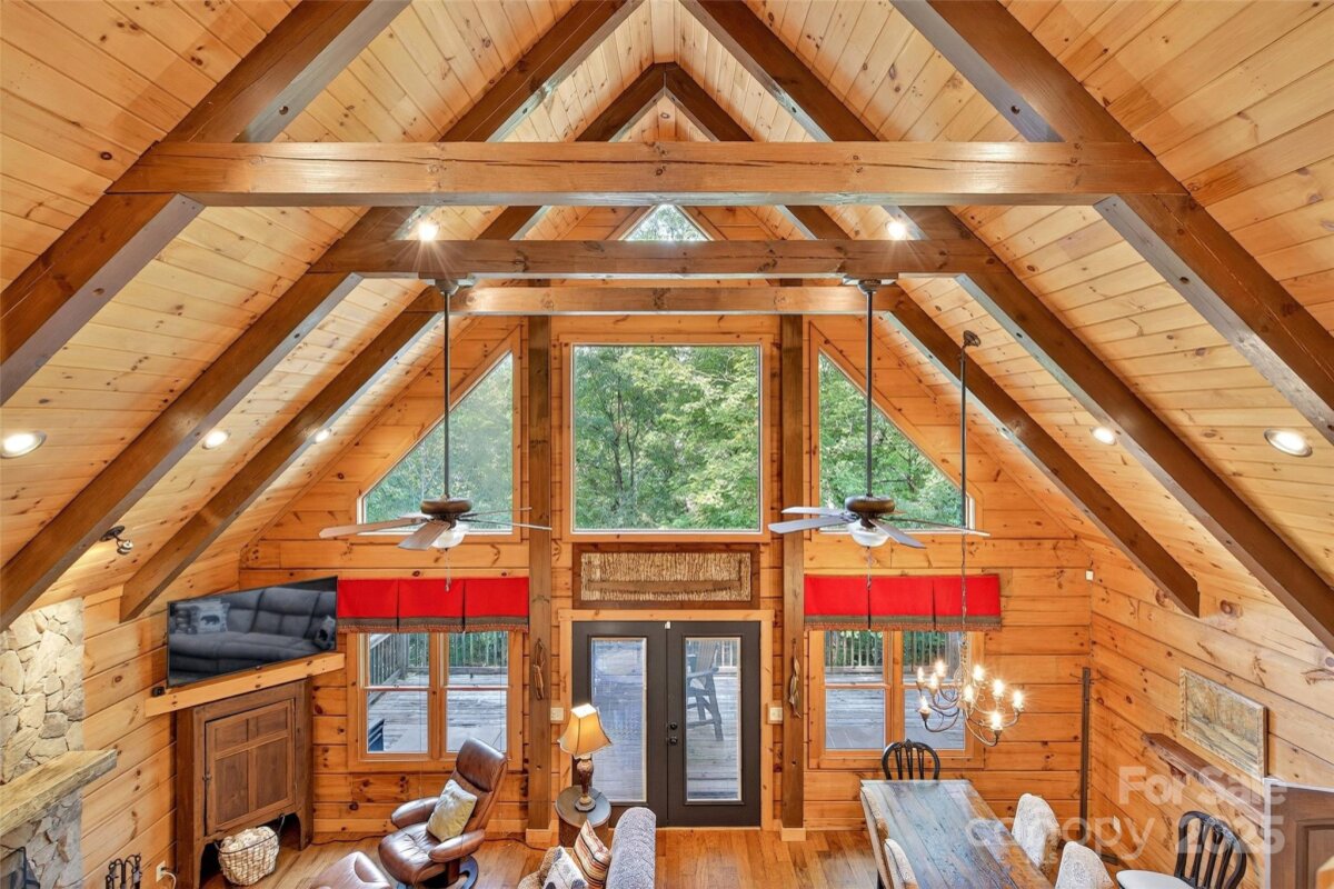 Escape the ordinary in this stunning, custom-crafted cabin where rustic charm meets modern luxury. Nestled on private, wooded lots containing 4.46 acres with approx. 122 ft. on Big Crabtree Creek. Stunning fall/winter view of the Black Mountain Range. This secluded retreat offers the ultimate escape without sacrificing upscale comforts. Easy access to Hwy 19 and Hwy 226. Fully furnished and move in ready. Due to closing other properties, seller requests a closing on or after 1/1/2026. As you enter, vaulted ceilings and exposed wooden beams create a breathtaking great room anchored by a floor-to-ceiling stone fireplace. The mantel is an original chestnut timber log from an early 1900's log cabin. The open floor plan is perfect for hosting memorable gatherings. The kitchen boasts granite countertops, stainless steel appliances, and an island with rock accents. A powder-room and pantry are just steps from the living/dining/kitchen area. Main level primary with en suite bath, includes king bed and cedar lined closets. The loft bedroom was used as a second primary with king bed and en-suite bathroom. Both bedrooms have custom curtains and Kincaid and Hooker furniture. The loft office/reading nook is comprised of a separate sitting area with a great fall/winter view of the Black Mountains. The main level and loft area floors are hand hewed hardwoods. The front door and all interior doors were custom built with knotty alder. The large picture windows in the living room are high wind rated . Separate AC/Heat systems for the main level and loft. Both systems can be monitored and controlled remotely using the Trane Home app. The finished basement carries the same attention to quality and uniqueness. There is an additional living area with stone accent walls, custom-built wood stove, full bar area and island with poplar bark highlights. A Bose surround sound system has been included for entertainment ease. This gathering area is perfect for quiet relaxation or entertaining guests. The basement also includes a full bathroom with stone accents and two bedrooms/bonus-rooms. One room includes a queen log bed, and the other has twin log bunk beds. Waterproof vinyl plank flooring with a cork backing covers the basement level. Exterior features include: A large wrap around deck off the main level with rockers and ceiling fans which offers a tranquil space to enjoy the peace and quiet of nature. A covered rock paver patio off the basement level provides an additional secluded area to quietly appreciate nature. Follow the rock paver platform steps to a large fire-pit. Experience the perfect balance of rugged beauty and refined living in this timeless masterpiece. Additional home features include: Chimney cap is custom built from solid copper in a “covered wagon†style to prevent water and animals from coming down the chimney. Loop driveway for easy access, with widened areas for parking. Gated community with remote opener for cars. CPI monitored alarm system, including an exterior camera which monitors the driveway and anyone on the walkway. System can be controlled remotely through the CPI app. Four Blink cameras for additional monitoring and wildlife viewing through the Blink app. Whole house water filters. Quarterly pest control service and annual termite inspection by Terminix since home was built. Solar landscape lighting in front walkway area. Minimal yard maintenance. No lawn to mow, as the yard was kept natural. Path to Big Crabtree Creek is just off the left corner of the home and is marked with reflective survey tape, start at the big rock below the deck and go stright. | Basic Information