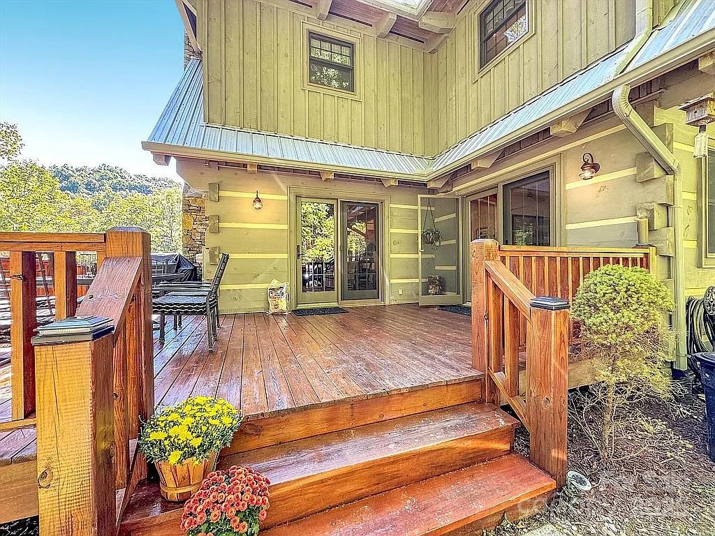 | Serene Mountain Retreat Nestled on nearly four secluded acres within a quiet 16-home mountain community, this artisan-crafted log home combines timeless craftsmanship with modern comfort. Constructed with 18-inch hand-hewn dovetail logs, 3-inch chinking, and a durable metal roof, the home offers exceptional energy efficiency, rustic elegance, and enduring quality. Highlights: 2,940 sq ft with 3 bedrooms and 3.5 baths Three combined lots totaling 3.86 private acres Fire-resistant metal roof and double-paned windows for superior insulation Custom wormy wood cabinetry and architectural details throughout Striking stone fireplace and open-concept living and dining areas Walk-out back deck and covered front porch for relaxing or entertaining Outdoor fire pit for gatherings Oversized 2-car detached garage plus attached art studio or hobby space Three finished levels for versatile living Main Level: Primary suite with full bath Custom kitchen and laundry room Deck and front porch access Upper Level: Second primary suite with dormer window and shared full bath Spacious loft with queen bed, lounge area, and owner’s closet Lower Level: Renovated living room with bay window and separate entrance Large bedroom that sleeps up to five Full bath ideal for guests or flexible use Location Perks: Minutes to downtown Waynesville and Haywood Regional Hospital Easy access to the Blue Ridge Parkway and Lake Junaluska (with pickleball, walking paths, pool, and more) Private 16-home HOA community with low annual dues of only $400 | Basic Information