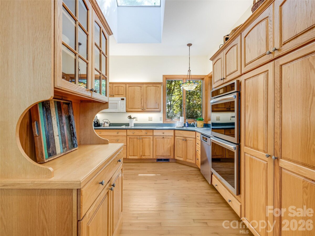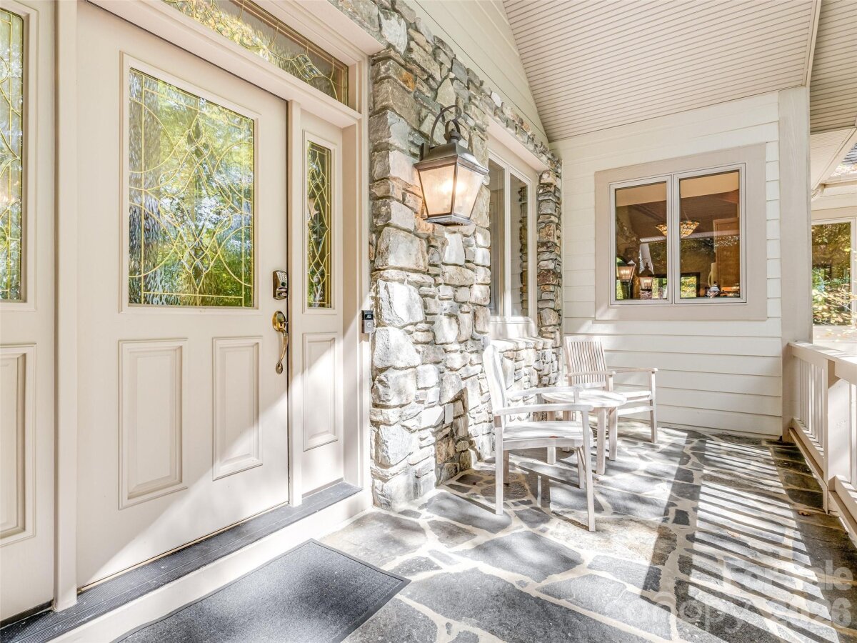 | Perched along Eagles Nest ridgeline, this thoughtfully designed mountain home invites you to slow down and savor the layered views of Waynesville, Maggie Valley, and the mountains beyond. Surrounded by trees and fresh mountain air, the home offers convenient one-level living with a welcoming covered porch and beautiful stonework entry. Inside, soaring beamed ceilings and expansive windows fill the open living area with light, anchored by a striking stone fireplace. The kitchen and dining area provide generous space for gathering and entertaining. The recently renovated primary suite features a spa-like bath with a blonde onyx tile walk-in shower with dual heads and glass doors, radiant heated tile floors, and a soaking tub, plus direct deck access. Updates include a heat pump, tankless water heater, generator, and expanded deck. Seller offering a $25,000 improvement allowance. Turn-key furnishings are available for separate purchase. | Basic Information