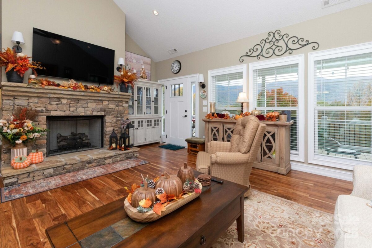 | Year 'round unobstructed mountain views, rushing water sounds, and fast, easy access to Interstate Roads! This gently lived in home is just like new and move-in ready for full-time residents or a vacation home. True split floorplan, 2 full baths with tile tub and shower surrounds, and open concept living with beautiful stone fireplace for the fall and winter months. Stunning acacia wood floors throughout the home with tile flooring in both baths. Stainless appliances, gas range, granite countertops and quality cabinetry make this kitchen a joy to cook in. Plumbed gas grill just outside the front door on the fully fenced front porch, connected to a large fenced yard for your pups. Huge 26 x 26 attached garage is currently used as a secondary family room but has plenty of room for your toys and tools with two huge windows looking onto those mountain views. Owners have recently added LVP flooring and a commercial grade heater to the garage. 13 minutes to Downtown Waynesville, 9 minutes to Walmart, 17 minutes to Sylva and 50 minutes to Asheville Regional Airport. Furniture available via separate bill of sale, making this a turn-key second home with short-term rental/investment opportunity! Additional 240 V outlet beside garage for RV use. | Basic Information