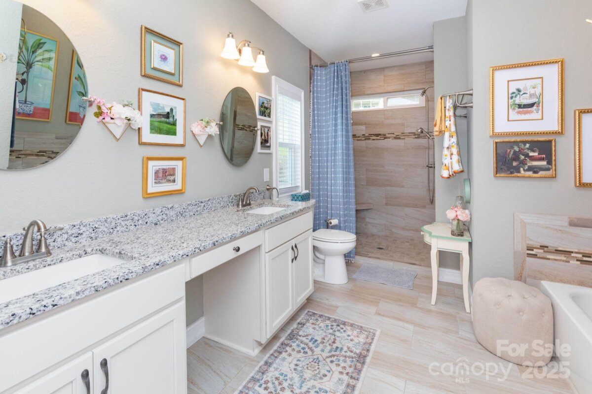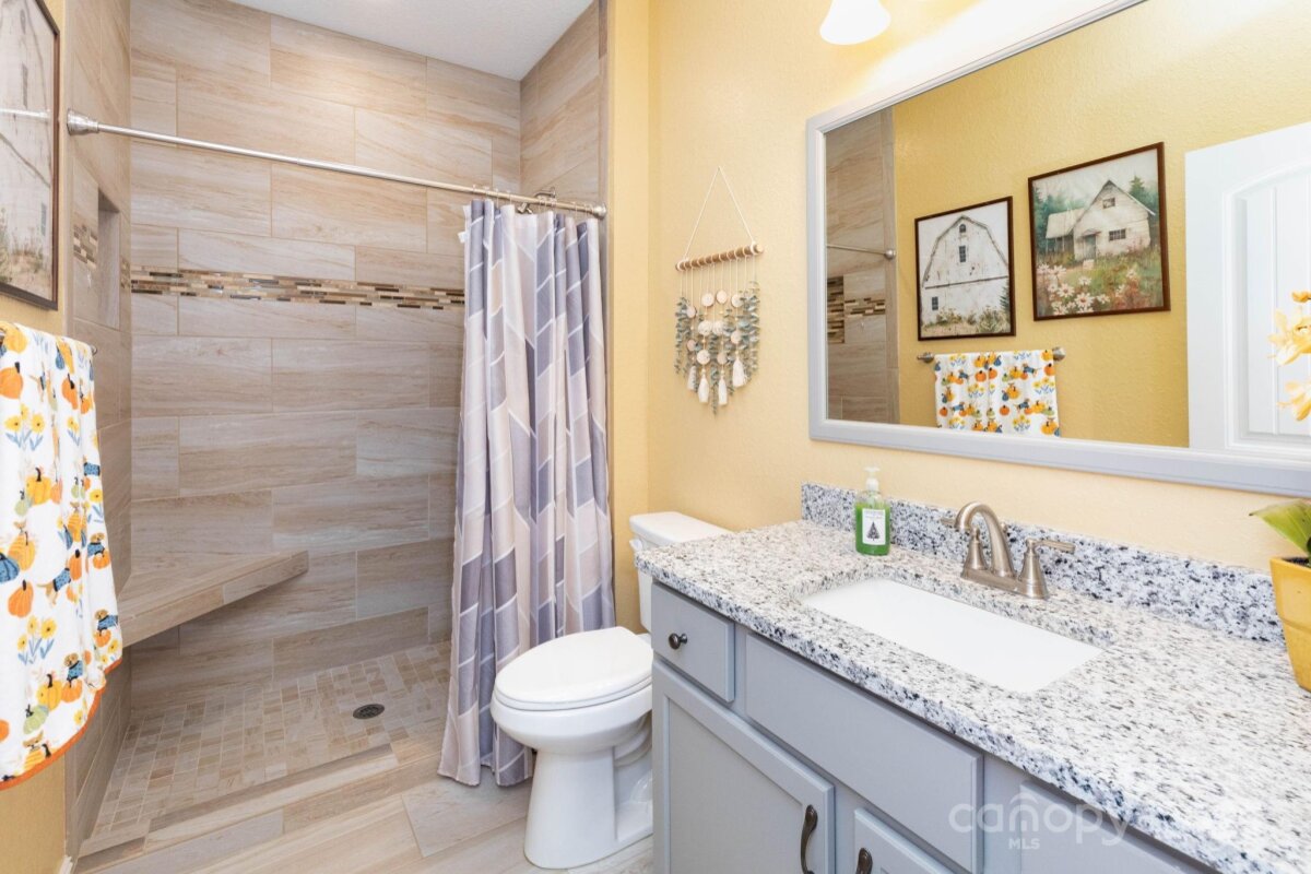 Come see this mountain villa close to Lake Junaluska, Waynesville, and Maggie Valley. This could be the perfect lock-and-leave vacation home or retirement home. Active homeowners association with restrictive covenants in place for your protection. 90+ day rentals only. Underground utilities, city water, sewer, and wide paved roads. Some of the features you will appreciate are the tongue-and-groove cathedral-beamed ceilings, large windows, wood flooring, breathtaking floor-to-ceiling stone fireplace, and sliding glass doors opening to a large back deck to enjoy the babbling brook. This home has been cared for lovingly with beautiful shrubs and flowering trees that are soon to bloom and make you pop with excitement. Hardwood floors, sile stone countertops in the kitchen, spacious bedrooms. 2 primary suites with full baths and large closets. Roomy loft upstairs with extra space for storage. Ideal location with easy year-round convenience. Can be sold turn-key fully furnished.