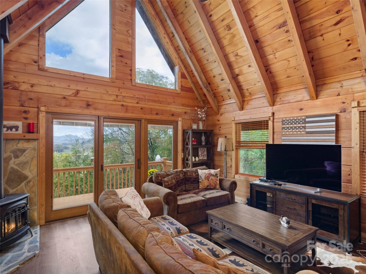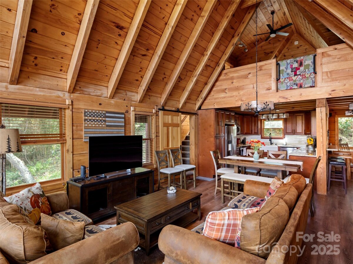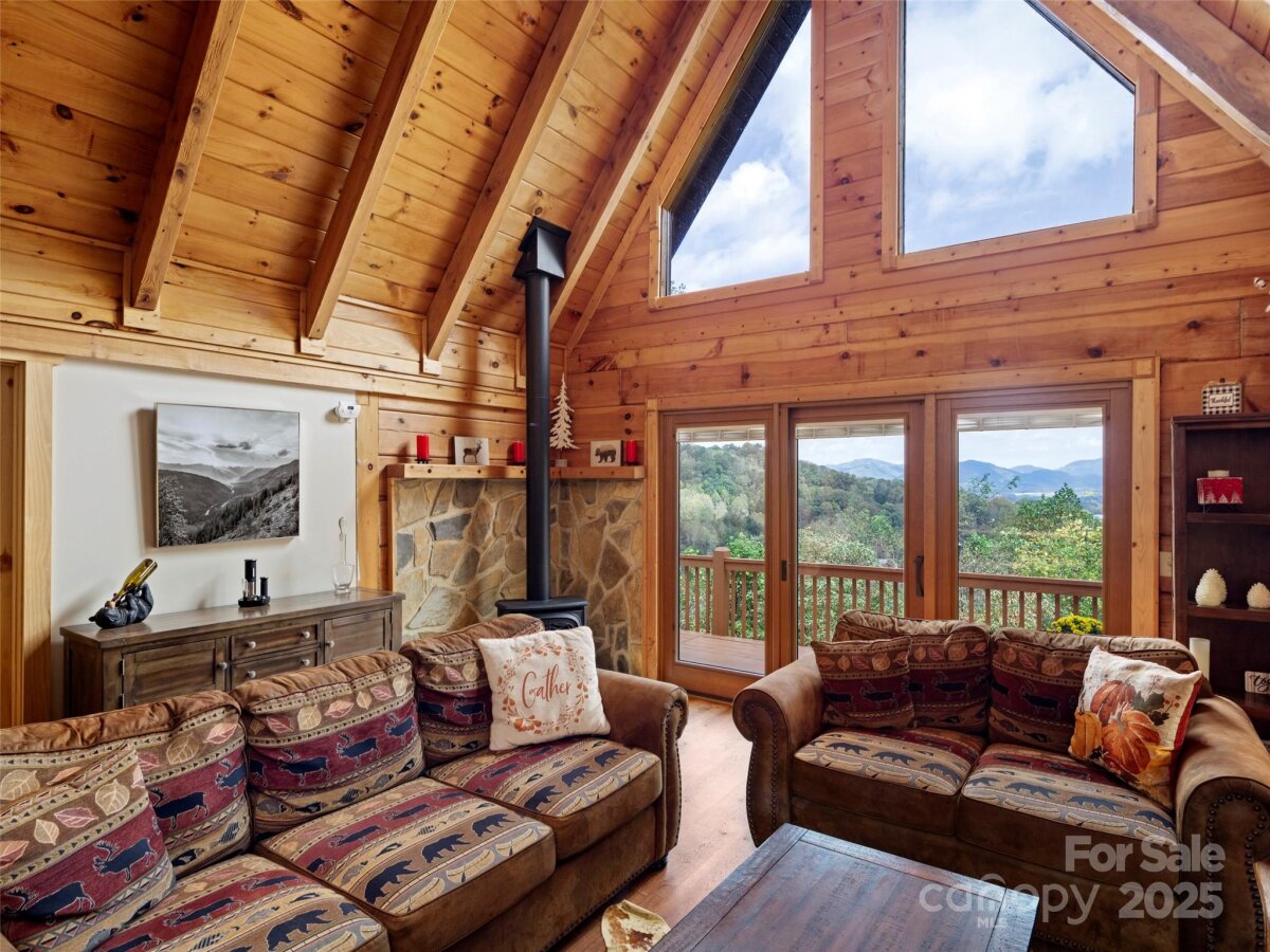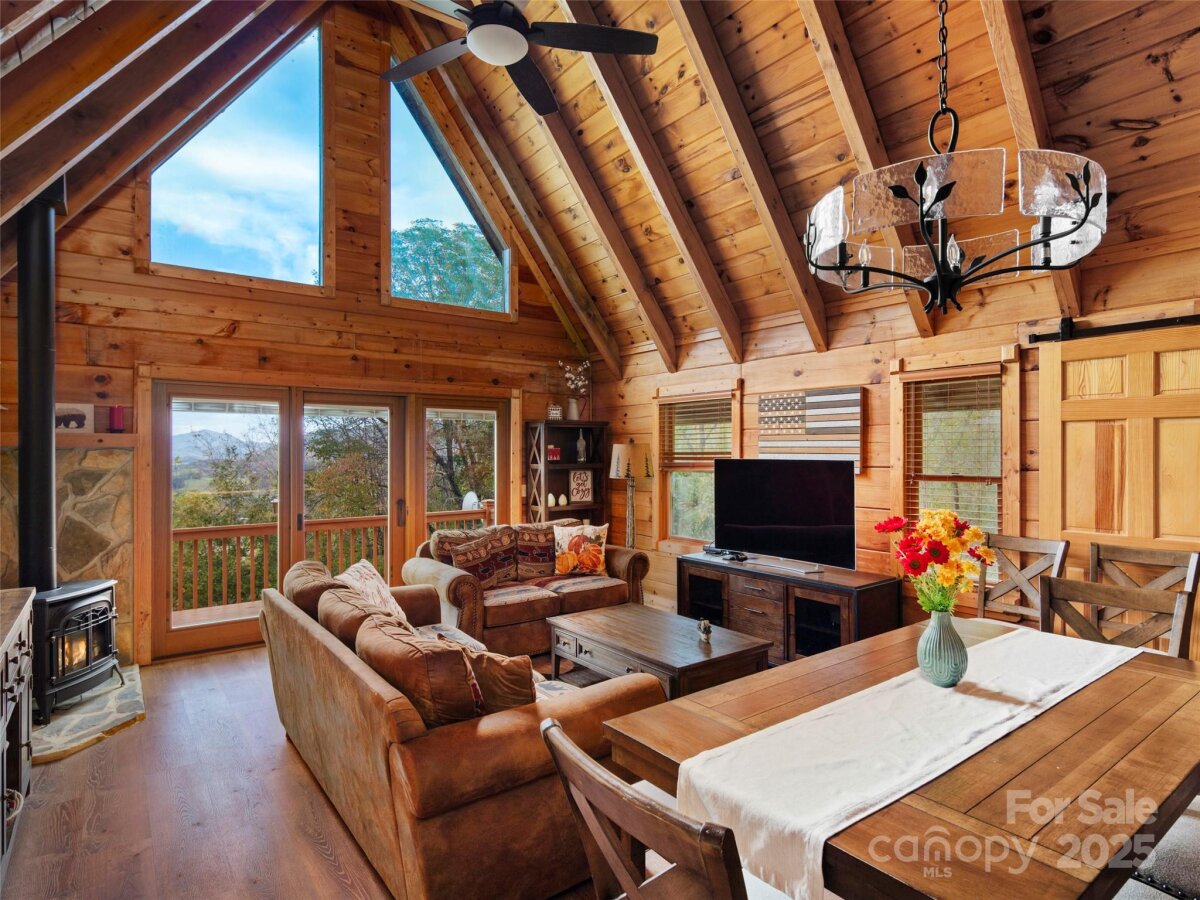 Welcome to your mountain retreat in beautiful Waynesville! This charming log cabin is brimming with warmth, comfort, and rustic elegance. Tucked away in a peaceful mountain community with easy access to both Waynesville and Maggie Valley, you’ll love being just minutes from local shops, cozy cafés, hiking trails, and winter skiing adventures. Wake up to breathtaking, year-round mountain views and sip your morning coffee enjoying the scenery from either of two inviting decks or the quiet rocking chair front porch. Inside, a gas-log fireplace creates the perfect cozy atmosphere on crisp mountain mornings. Every detail of this home has been thoughtfully updated—from the freshly sandblasted, sealed, and stained log exterior to the custom walnut entry door that welcomes you inside. The main level features a comfortable bedroom with an en suite bathroom, offering privacy and convenience for owners or guests. Upstairs, a spacious game room provides plenty of room for entertaining or accommodating additional guests. The beautifully renovated kitchen and bathrooms combine modern updates with classic cabin charm, featuring High Country–inspired finishes, warm wood accents, and a built-in wine refrigerator perfect for gatherings. Recent upgrades include new electrical and plumbing systems, a high-efficiency Wi-Fi heat pump water heater, high-speed fiber optic Spectrum full gig internet, and fresh landscaping that enhances the home’s mountain curb appeal. Best of all, this home is being offered turn-key, fully furnished, so you can begin enjoying your mountain escape from day one. Surrounded by nature and filled with character, this home offers the perfect blend of comfort and serenity. Whether you’re looking for a full-time residence, a vacation getaway, or a cozy retreat to share with family and friends, this sweet mountain cabin is truly something special. Don’t miss your chance to call it yours! | Basic Information