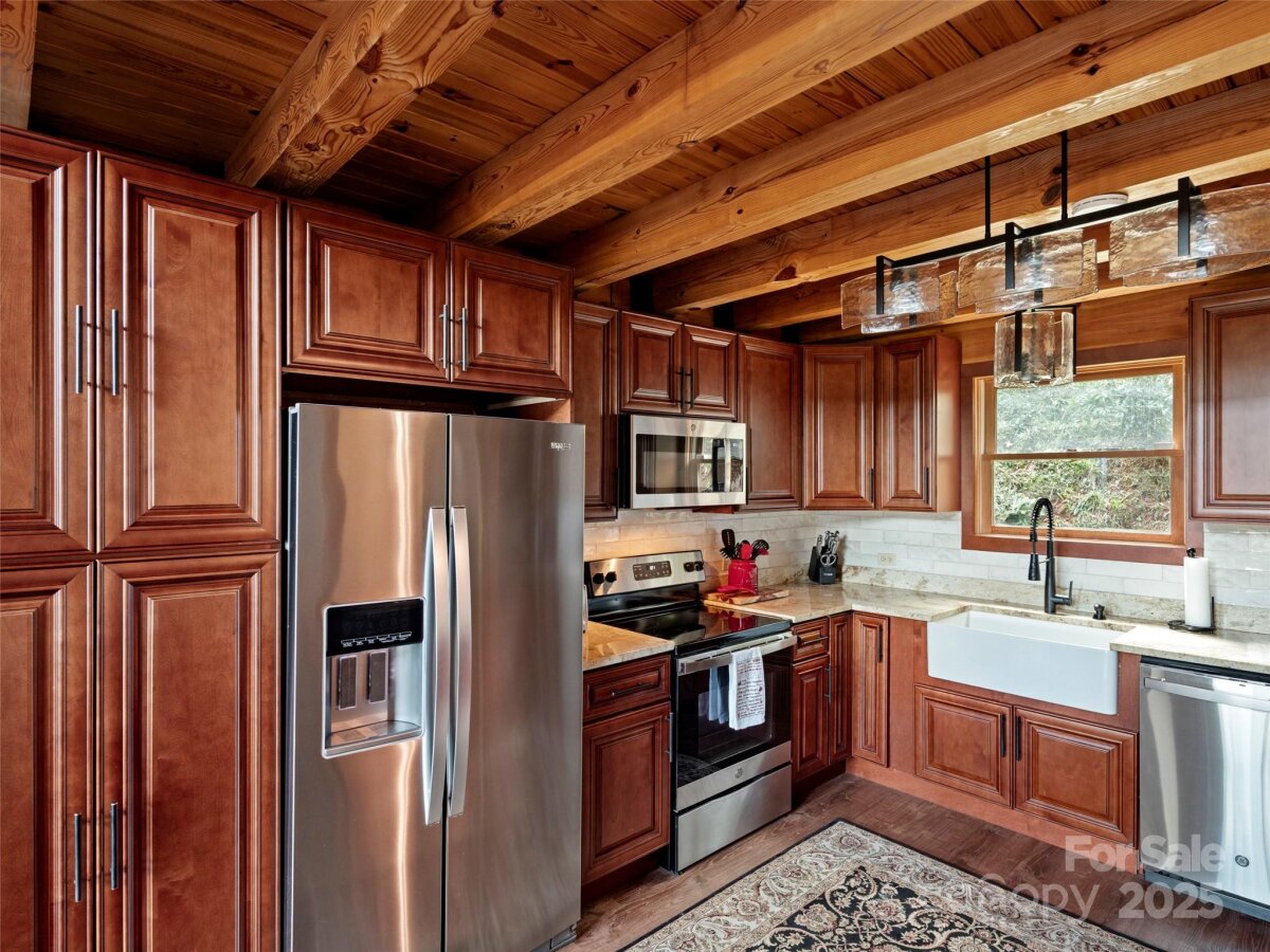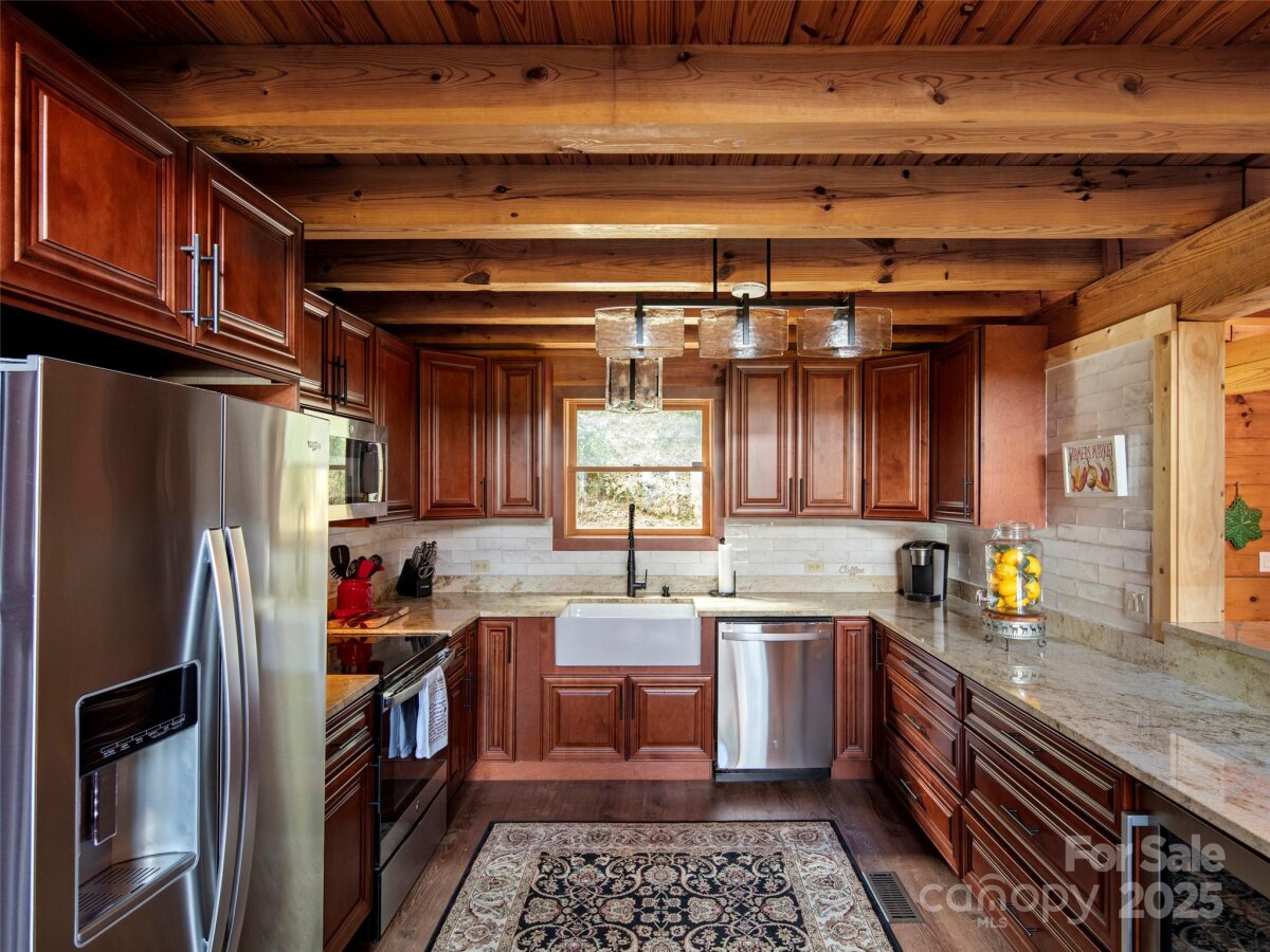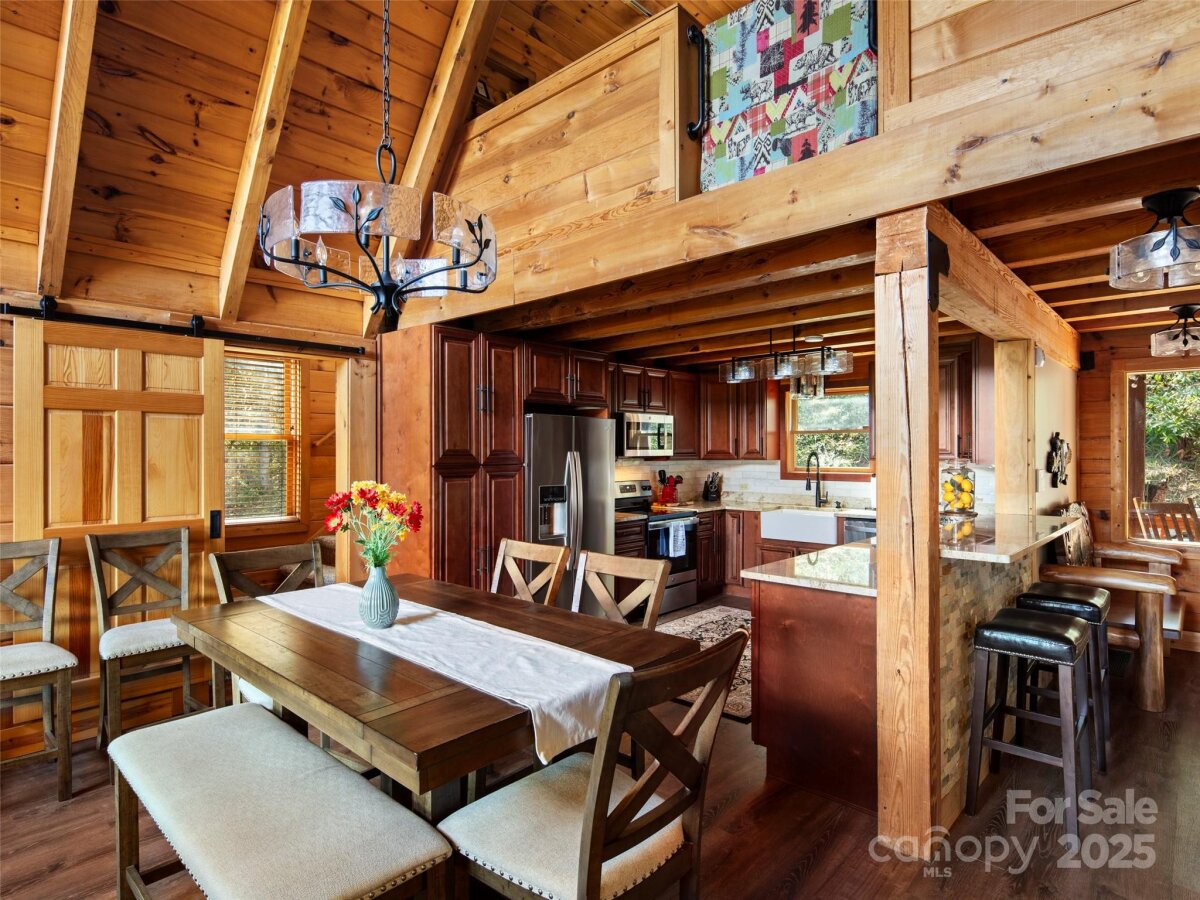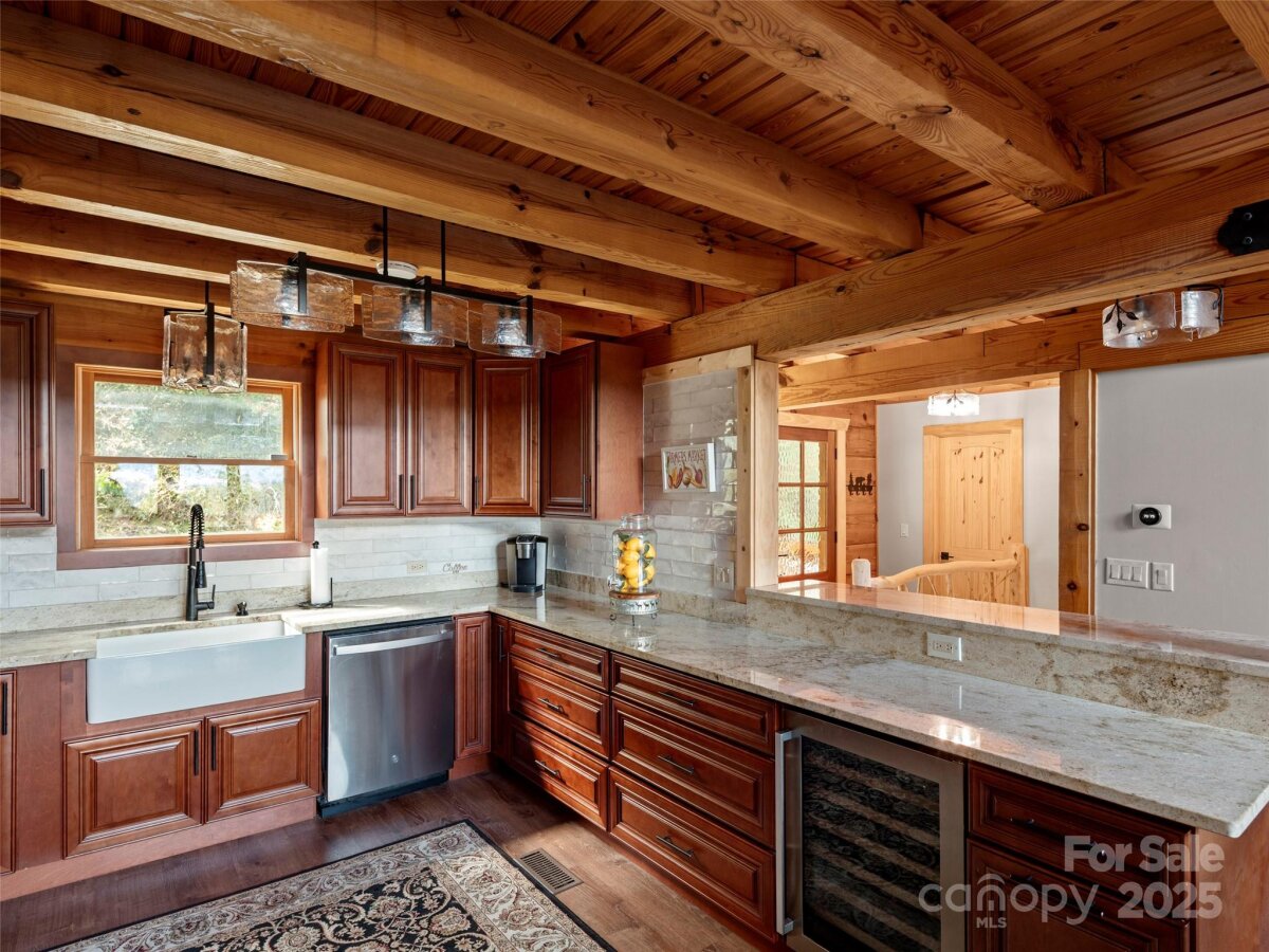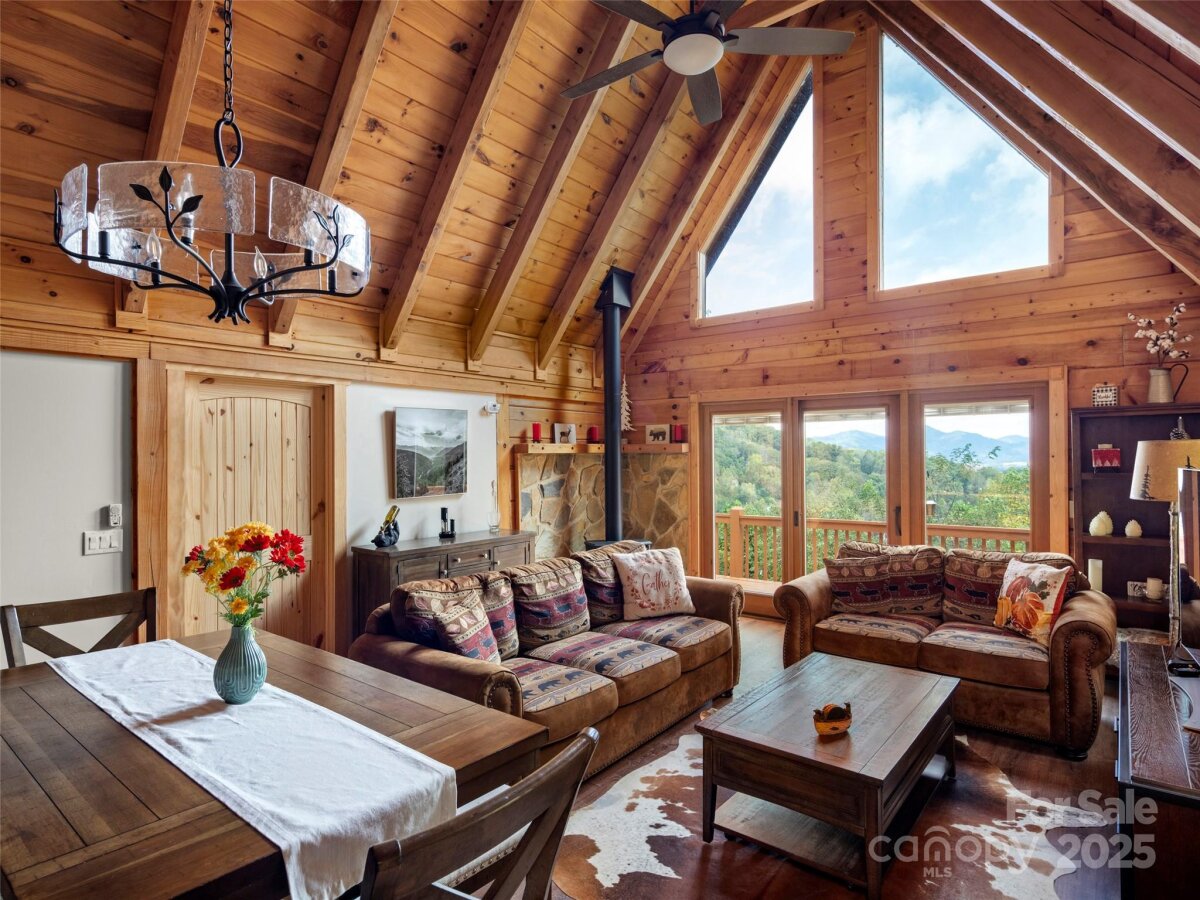 Welcome to your mountain retreat in beautiful Waynesville! This charming log cabin is brimming with warmth, comfort, and rustic elegance. Tucked away in a peaceful mountain community with easy access to both Waynesville and Maggie Valley, you’ll love being just minutes from local shops, cozy cafés, hiking trails, and winter skiing adventures. Wake up to breathtaking, year-round mountain views and sip your morning coffee enjoying the scenery from either of two inviting decks or the quiet rocking chair front porch. Inside, a gas-log fireplace creates the perfect cozy atmosphere on crisp mountain mornings. Every detail of this home has been thoughtfully updated—from the freshly sandblasted, sealed, and stained log exterior to the custom walnut entry door that welcomes you inside. The main level features a comfortable bedroom with an en suite bathroom, offering privacy and convenience for owners or guests. Upstairs, a spacious game room provides plenty of room for entertaining or accommodating additional guests. The beautifully renovated kitchen and bathrooms combine modern updates with classic cabin charm, featuring High Country–inspired finishes, warm wood accents, and a built-in wine refrigerator perfect for gatherings. Recent upgrades include new electrical and plumbing systems, a high-efficiency Wi-Fi heat pump water heater, high-speed fiber optic Spectrum full gig internet, and fresh landscaping that enhances the home’s mountain curb appeal. Best of all, this home is being offered turn-key, fully furnished, so you can begin enjoying your mountain escape from day one. Surrounded by nature and filled with character, this home offers the perfect blend of comfort and serenity. Whether you’re looking for a full-time residence, a vacation getaway, or a cozy retreat to share with family and friends, this sweet mountain cabin is truly something special. Don’t miss your chance to call it yours! | Basic Information