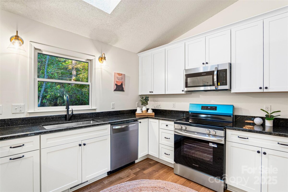 | Another amazing remodel by ZEN Contracting. This home was beautifully transported into the current day with all sorts of sexy updates. The freshly refinished hardwood floors on the main level give lots of warmth to the open floorplan and the ALL NEW kitchen will make you want to spend all day cooking with soft touch hardwood cabinets, stone countertops, new stainless steel appliances and sleek modern fixtures. Tons of natural light throughout is aided with skylight in the kitchen and large new French door leading out to your new deck and outdoor space. Primary suite is set away from the living area and has been updated with single vanity sink and tiled in shower with glass sliding door. Head downstairs for a second living area/Flex space perfect for home office, gym, or guest suite with it's large open space, closet, private walk out patio and full bath! Large utility room has lots of room for your washer and dryer, not to mention the oversized 2 car garage for all your workshop/storage needs. Set back off the road with a private yard space this home gives all the feelings of being out in the country but only minutes from downtown Weaverville, and a quick shot to Asheville with easy access to 26. Just a couple blocks from N Buncombe Middle. | Basic Information