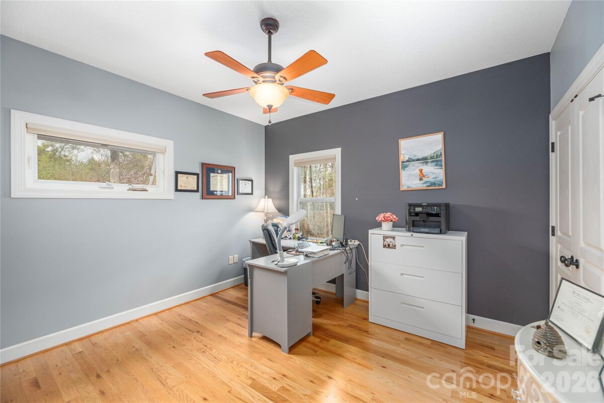 Welcome to a home where design is intentional, light is abundant, and every detail tells a story. A standout Parade of Homes winner, this property sits in one of Weaverville’s most sought-after communities, offering the rare advantage of backroad access into North Asheville, where convenience meets quiet living. Step inside and feel the difference. Soaring ceilings. Natural materials. Sunlight moving freely through an open, connected space. The kitchen anchors the home equipped with high-end appliances and a gas range flowing effortlessly into the dining and living areas, and outward to spaces designed for gathering, unwinding, and everyday living. The main-level primary suite is a retreat of its own, featuring a tiled walk-in shower and dual vanity, simple, refined, and built for comfort. Upstairs, a fourth bonus room offers flexibility for work, play, or guests. Outside, the lifestyle continues. A covered porch, a private balcony, and peaceful creekside moments create spaces that invite connection to nature, to others, to yourself. Built with purpose, this Certified Green Built home includes a sealed crawl space and dehumidification system, enhancing both efficiency and indoor air quality. Just minutes from both downtown Weaverville and North Asheville, the location offers the best of both worlds access and escape. This isn’t just a home. It’s a place designed to be lived in, felt, and remembered.