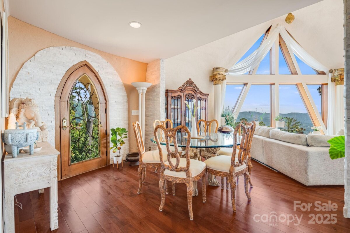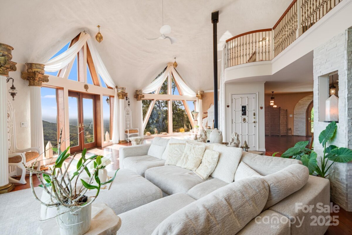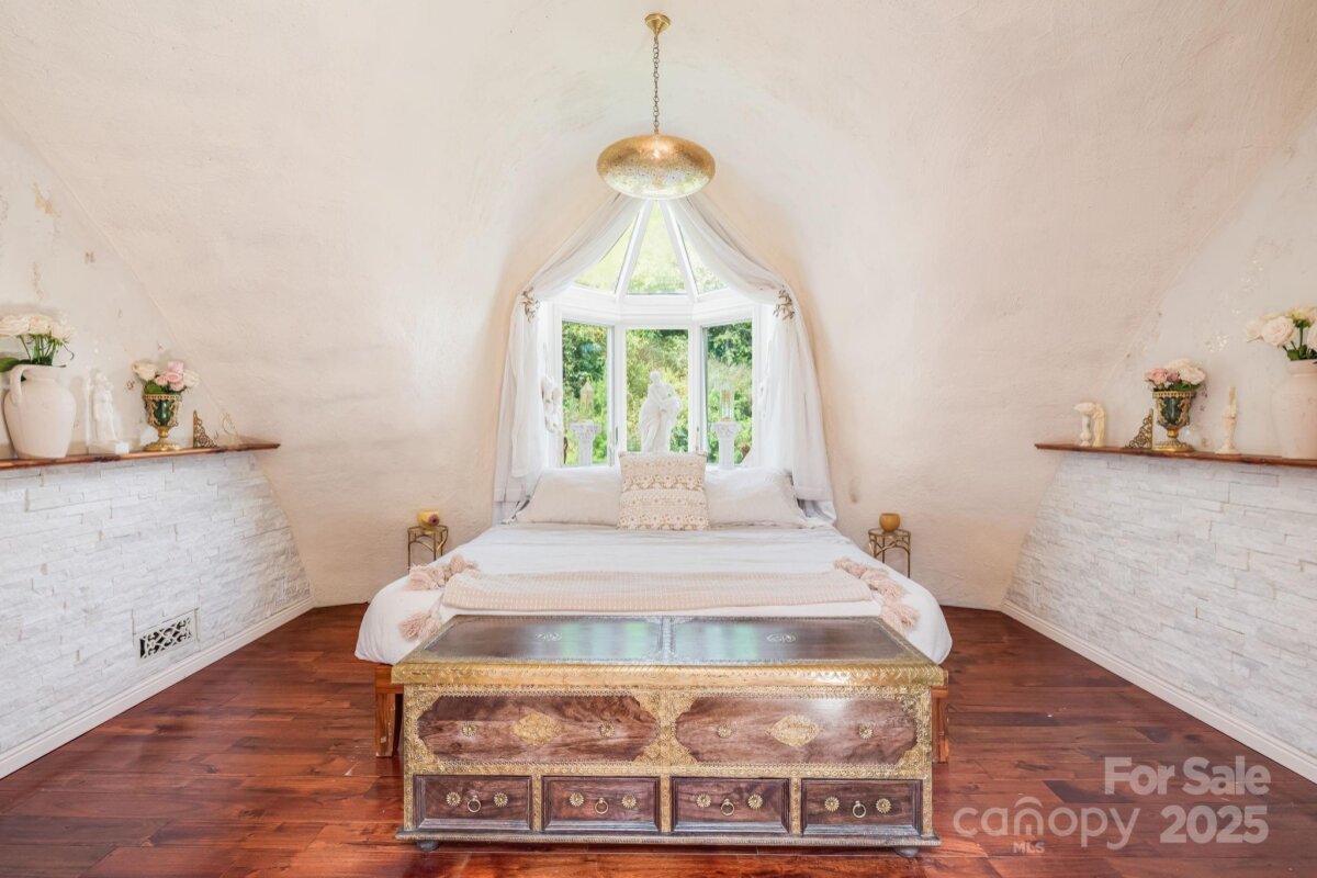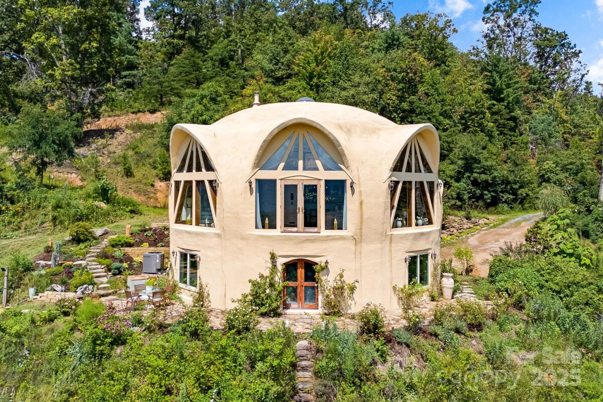 Welcome to Azura Gardens. A rare Mountain Sanctuary with a Dome Home & Guest Cottages. Perched above the clouds, this extraordinary mountain estate offers a rare blend of breathtaking panoramic views, timeless design, and exceptional privacy- while being 10 minutes from Weaverville and 20 minutes from downtown Asheville. From sunrise to sunset, the sweeping horizons create a backdrop of ever-changing beauty, while the roughly 28 acres of land itself provides both abundance and tranquility. This is more than a property- it's a lifestyle of creativity, peace, and connection. At the heart of the estate stands a remarkable ~3,400sf Dome Home, a handcrafted monolithic structure designed with energy efficiency and artistry in mind. With two bedrooms, two and a half baths, and both a full kitchen and kitchenette, the home balances comfort with sustainability. Interior features include custom woodwork, arched details, and a built-in observation beehive. Spa-like bathrooms showcase custom tubs and a steam shower, while a wood stove in the living room provides cozy off-grid heating. Exceptional insulation with an R-value of 84 ensures year-round comfort. Every detail of this unique residence reflects vision, intention, and craftsmanship. Complementing the Dome Home are two exquisite guest cottages, each designed as a retreat of their own. The Stone House (approx. 295 sq. ft.) shows elegance with a Moroccan aesthetic, featuring stucco walls, stone cabinetry, artisan finishes, and an open-plan layout with a walk-in shower. The Creek House (approx. 295 sq. ft.) offers serene living at the water’s edge, inspired by Japanese Wabi-Sabi design. With stucco interiors, stone cabinetry, a walk-in shower, and a patio overlooking the spring-fed creek, it is a peaceful hideaway connected to nature by a winding stone path. The roughly 28 acres of land surrounding the residences is equally extraordinary. A year-round creek meanders through the property, while private wells and multiple natural springs provide pure, abundant water. The grounds are alive with beauty and self-sufficiency: vibrant pollinator gardens and an apiary support bees and butterflies, a rose garden adds cultivated charm, and fruit trees are scattered throughout the landscape. With ample space for additional building sites, the property offers flexibility for expansion while preserving its sense of seclusion. Trails and roadbeds wind across the terrain, inviting exploration by foot, bike, or horseback, and providing endless opportunities for outdoor adventure. Each element of this sanctuary has been created with care and intention, resulting in a property that is both functional and inspirational. Whether you are looking for a private mountain retreat, a sustainable homestead, or a profitable venue for hosting and gathering, it offers a rare opportunity to own such a unique piece of property- ready for its next owner to continue to add and make it their own. Interactive map link: https://id.land/maps/9960b013da816c6381914f40593e84e7/share/unbranded | Basic Information