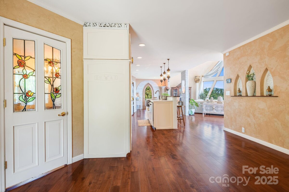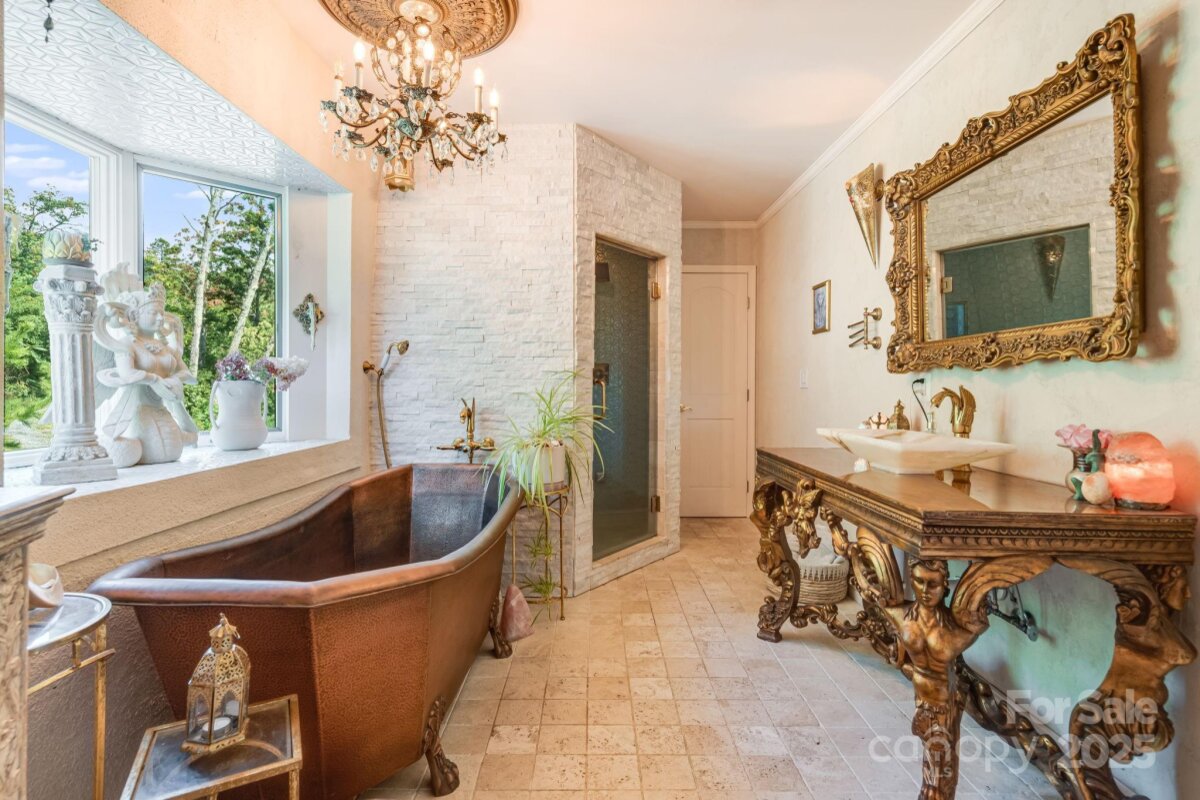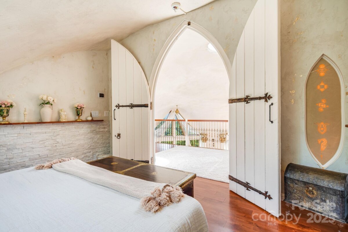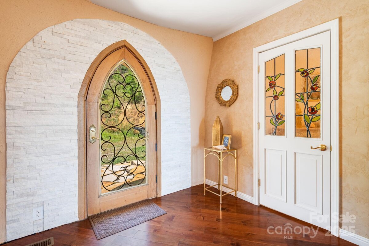 Welcome to Azura Gardens. A rare Mountain Sanctuary with a Dome Home & Guest Cottages. Perched above the clouds, this extraordinary mountain estate offers a rare blend of breathtaking panoramic views, timeless design, and exceptional privacy- while being 10 minutes from Weaverville and 20 minutes from downtown Asheville. From sunrise to sunset, the sweeping horizons create a backdrop of ever-changing beauty, while the roughly 28 acres of land itself provides both abundance and tranquility. This is more than a property- it's a lifestyle of creativity, peace, and connection. At the heart of the estate stands a remarkable ~3,400sf Dome Home, a handcrafted monolithic structure designed with energy efficiency and artistry in mind. With two bedrooms, two and a half baths, and both a full kitchen and kitchenette, the home balances comfort with sustainability. Interior features include custom woodwork, arched details, and a built-in observation beehive. Spa-like bathrooms showcase custom tubs and a steam shower, while a wood stove in the living room provides cozy off-grid heating. Exceptional insulation with an R-value of 84 ensures year-round comfort. Every detail of this unique residence reflects vision, intention, and craftsmanship. Complementing the Dome Home are two exquisite guest cottages, each designed as a retreat of their own. The Stone House (approx. 295 sq. ft.) shows elegance with a Moroccan aesthetic, featuring stucco walls, stone cabinetry, artisan finishes, and an open-plan layout with a walk-in shower. The Creek House (approx. 295 sq. ft.) offers serene living at the water’s edge, inspired by Japanese Wabi-Sabi design. With stucco interiors, stone cabinetry, a walk-in shower, and a patio overlooking the spring-fed creek, it is a peaceful hideaway connected to nature by a winding stone path. The roughly 28 acres of land surrounding the residences is equally extraordinary. A year-round creek meanders through the property, while private wells and multiple natural springs provide pure, abundant water. The grounds are alive with beauty and self-sufficiency: vibrant pollinator gardens and an apiary support bees and butterflies, a rose garden adds cultivated charm, and fruit trees are scattered throughout the landscape. With ample space for additional building sites, the property offers flexibility for expansion while preserving its sense of seclusion. Trails and roadbeds wind across the terrain, inviting exploration by foot, bike, or horseback, and providing endless opportunities for outdoor adventure. Each element of this sanctuary has been created with care and intention, resulting in a property that is both functional and inspirational. Whether you are looking for a private mountain retreat, a sustainable homestead, or a profitable venue for hosting and gathering, it offers a rare opportunity to own such a unique piece of property- ready for its next owner to continue to add and make it their own. Interactive map link: https://id.land/maps/9960b013da816c6381914f40593e84e7/share/unbranded | Basic Information