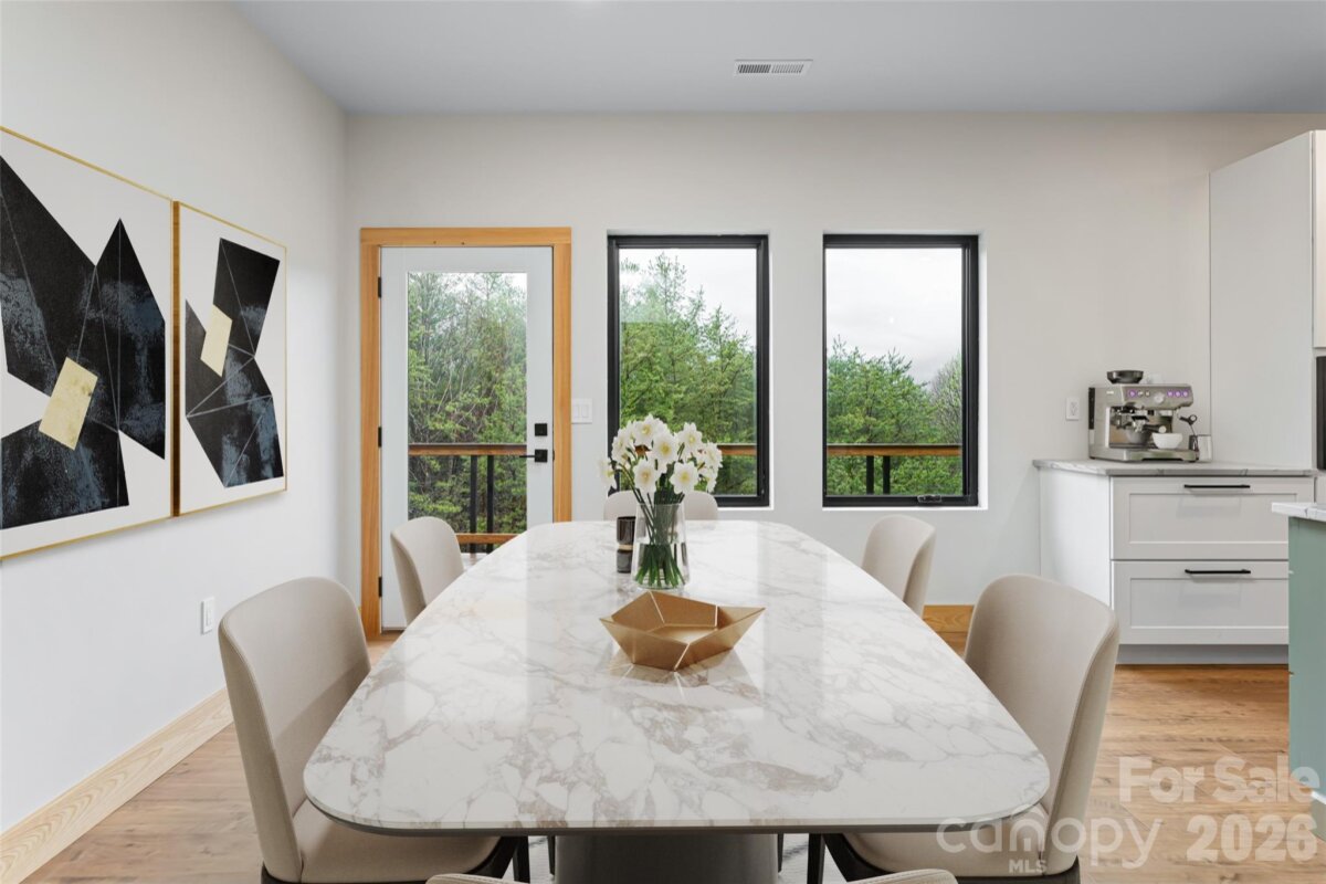 Welcome to a home where design is intentional, light is abundant, and every detail tells a story. A standout Parade of Homes winner, this property sits in one of Weaverville’s most sought-after communities, offering the rare advantage of backroad access into North Asheville, where convenience meets quiet living. Step inside and feel the difference. Soaring ceilings. Natural materials. Sunlight moving freely through an open, connected space. The kitchen anchors the home equipped with high-end appliances and a gas range flowing effortlessly into the dining and living areas, and outward to spaces designed for gathering, unwinding, and everyday living. The main-level primary suite is a retreat of its own, featuring a tiled walk-in shower and dual vanity, simple, refined, and built for comfort. Upstairs, a fourth bonus room offers flexibility for work, play, or guests. Outside, the lifestyle continues. A covered porch, a private balcony, and peaceful creekside moments create spaces that invite connection to nature, to others, to yourself. Built with purpose, this Certified Green Built home includes a sealed crawl space and dehumidification system, enhancing both efficiency and indoor air quality. Just minutes from both downtown Weaverville and North Asheville, the location offers the best of both worlds access and escape. This isn’t just a home. It’s a place designed to be lived in, felt, and remembered.