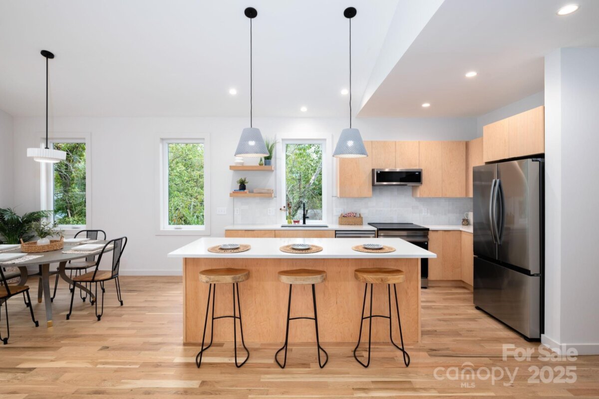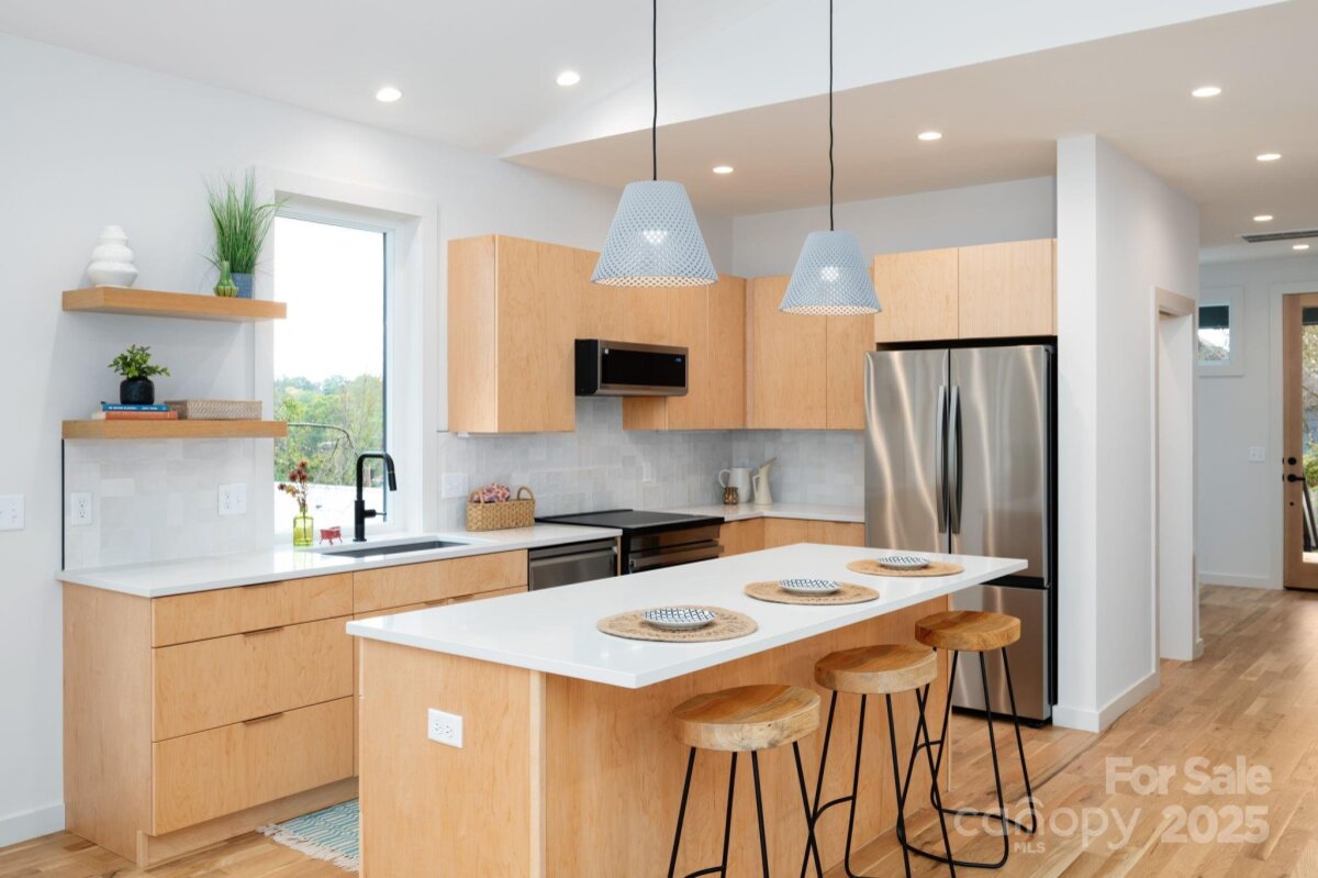 Brand-new GreenBuilt and Energy Star Certified by JAG Construction, this Arts and Crafts residence offers a perfect blend of style, comfort, and sustainability in the heart of West Asheville. Set on a spacious, flat, landscaped lot with an expansive, fully fenced backyard and short-range mountain views, the home provides an ideal setting for entertaining, gardening, or relaxing outdoors. Inside, oversized windows and vaulted ceilings fill the open floor plan with natural light. A modern, eco-friendly electric fireplace with a custom wood surround anchors the living room. The chef’s kitchen showcases quartz countertops, stainless steel appliances, a large island, and modern finishes, all flowing seamlessly into the dining and living areas. The main-level suite features clerestory windows, custom walk-in closet, and a spa-like bath with double quartz vanity and tiled walk-in shower. Upstairs, two additional bedrooms and a full bath with double vanity complete the thoughtful layout. Enjoy a welcoming covered front porch, sunny rear deck, and convenient location—just minutes from downtown Asheville and Haywood Road amenities. See brochure for details. | Basic Information
